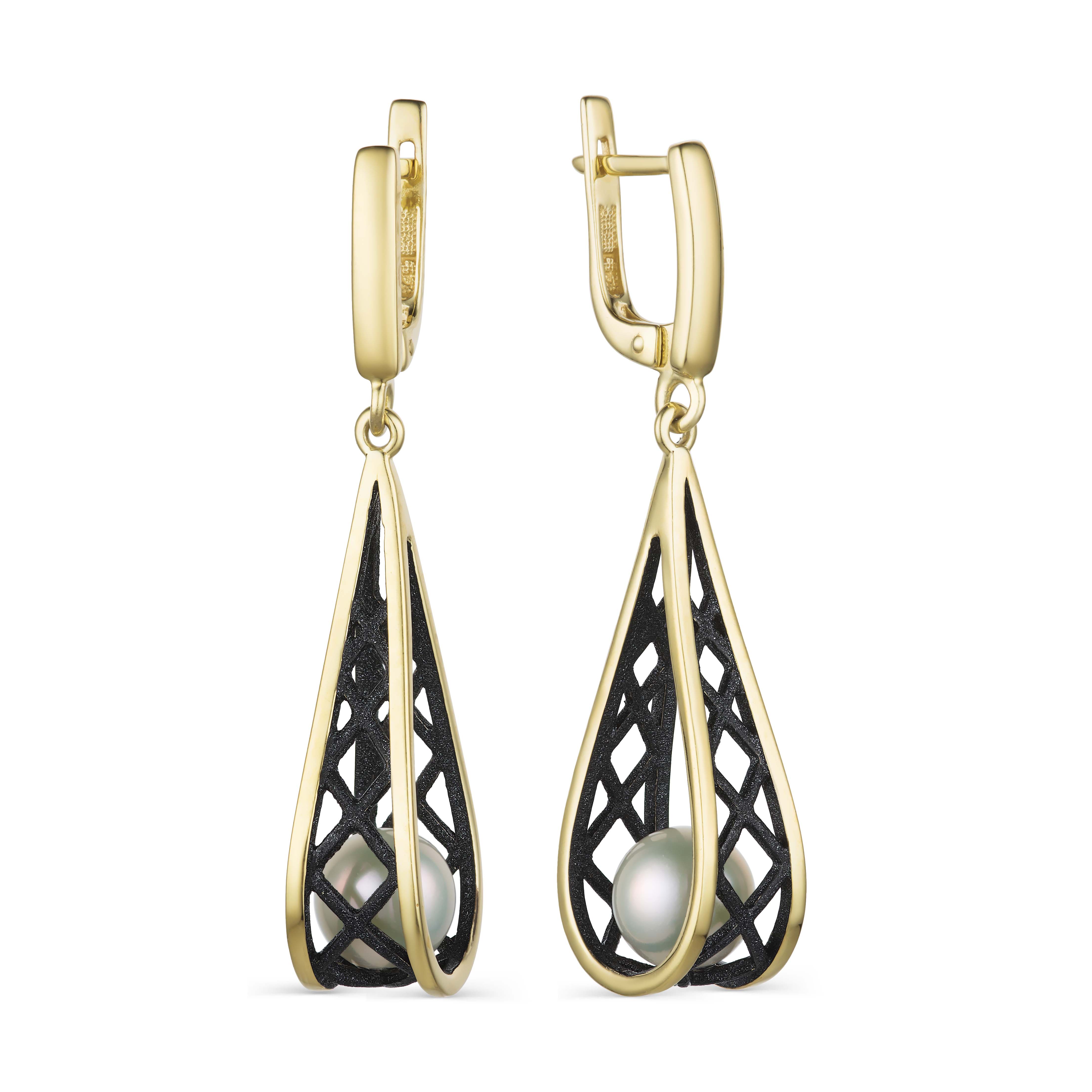 Серьги с жемчугом и эмалью из серебра 925 пробы арт. 52858Y1B