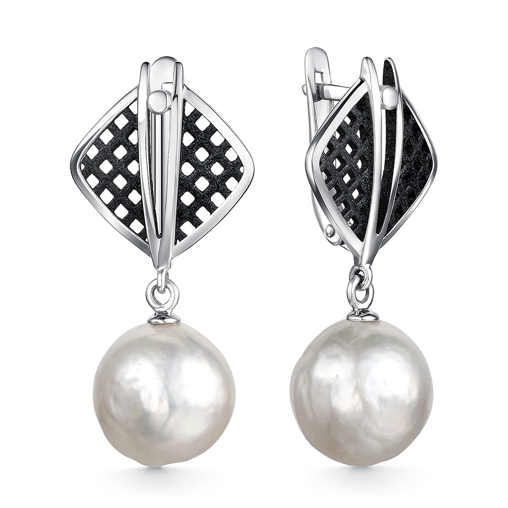 Серьги с барочным жемчугом и эмалью из серебра 925 пробы арт. 52864S6B