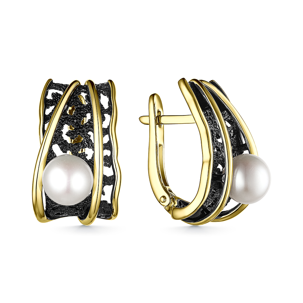 Серьги с жемчугом и эмалью из серебра 925 пробы с позолотой арт. 52959Y1B