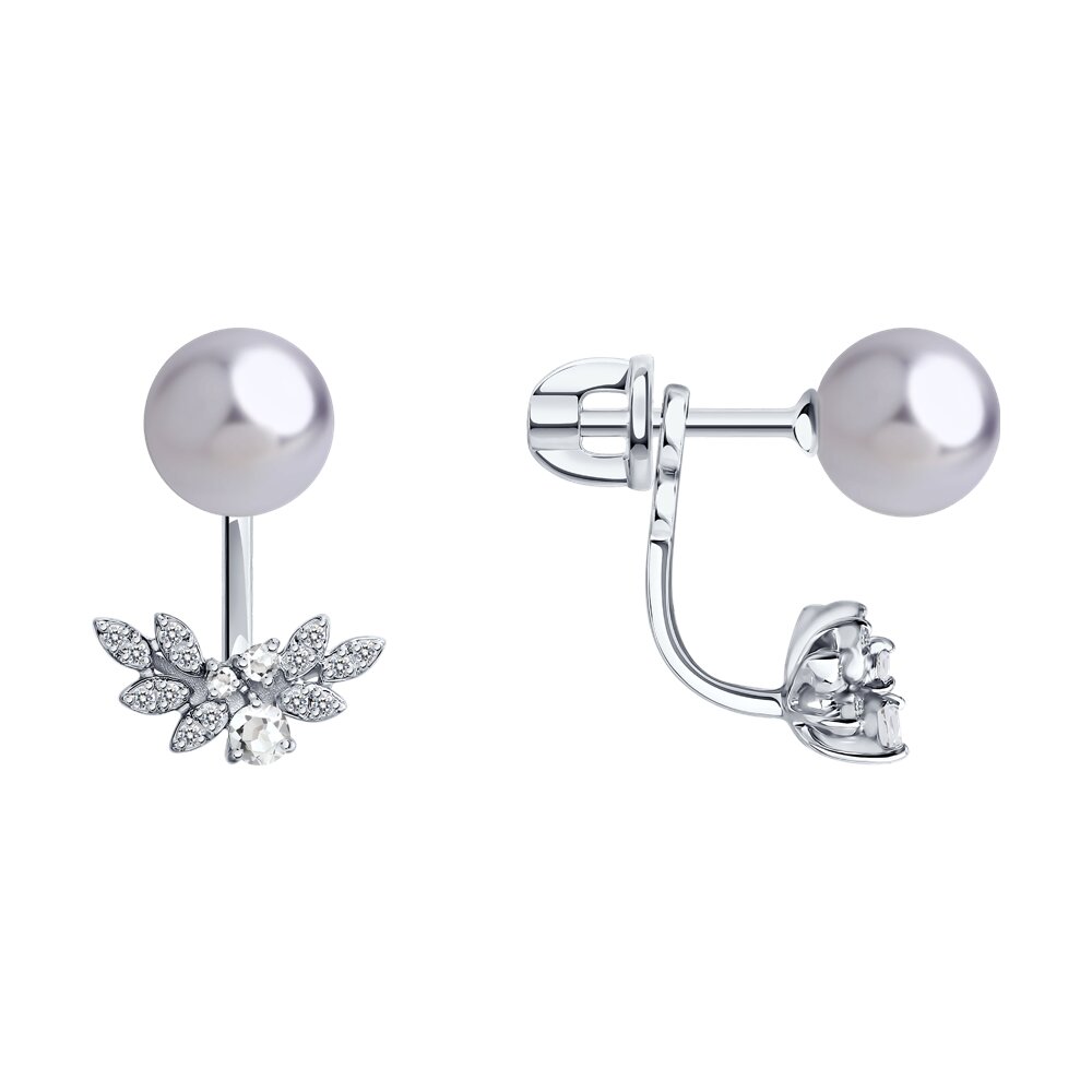 Серьги с жемчугом, горным хрусталем, топазами и бриллиантами из белого золота 585 пробы арт. 79-20105-3