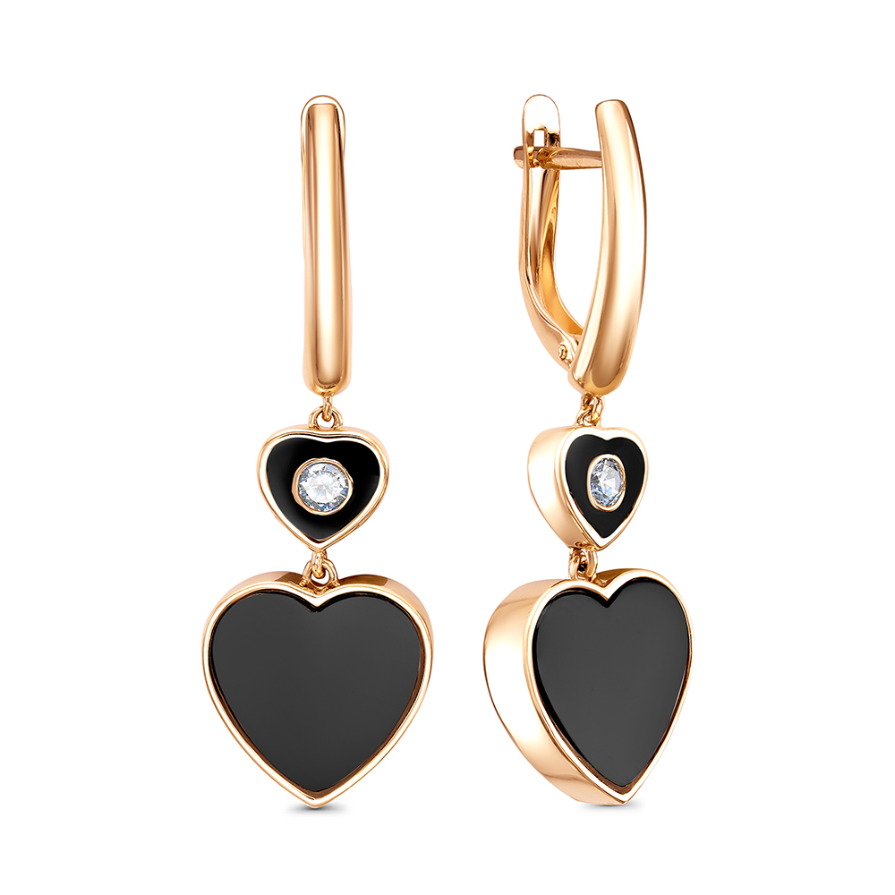 Серьги "Сердца" с фианитами и эмалью из золота 585 пробы