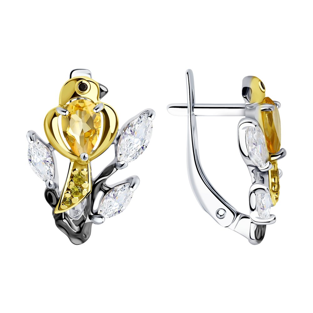 Серьги «Птички» с фианитами и цитрином из серебра 925 пробы арт. 92021618