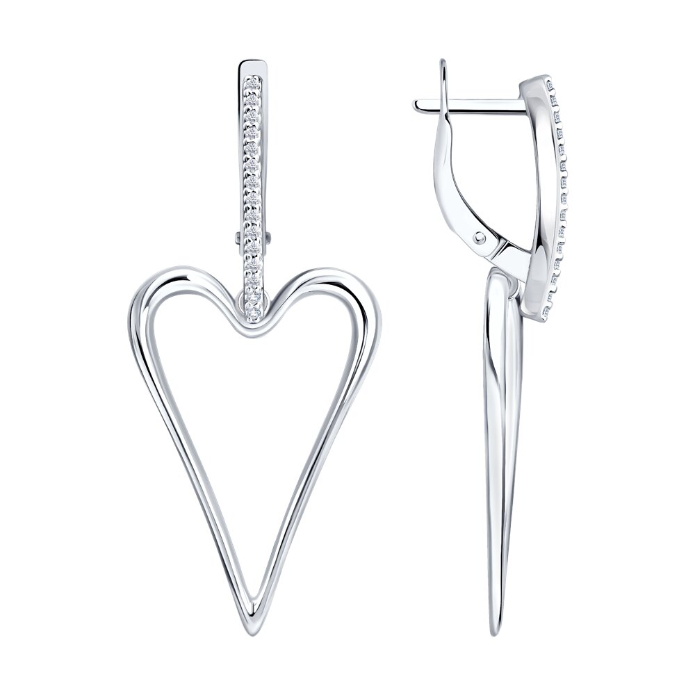 Серьги "Сердца" с фианитами из серебра 925 пробы арт. 94-121-00207-1
