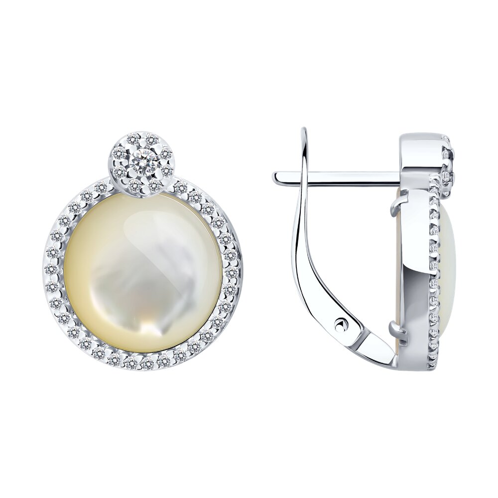 Серьги с перламутром и фианитами из серебра 925 пробы арт. 94-320-02314-1
