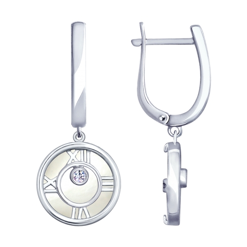 Серьги "Часы" с перламутром и фианитами из серебра 925 пробы арт. 94023195