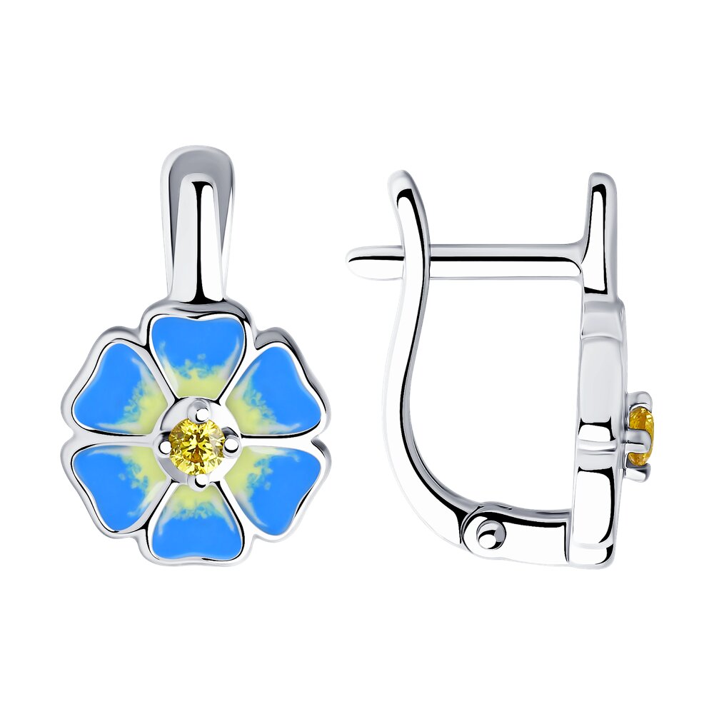 Серьги "Цветы" с фианитами и эмалью из серебра 925 пробы арт. 94023527