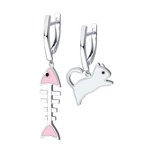 Серьги "Котик с рыбкой" с эмалью из серебра 925 пробы арт. 94024033