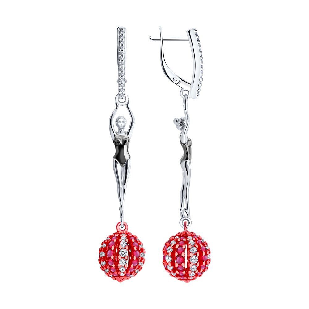 Серьги "Гимнастки" с корундами и фианитами из серебра 925 пробы арт. 94027581