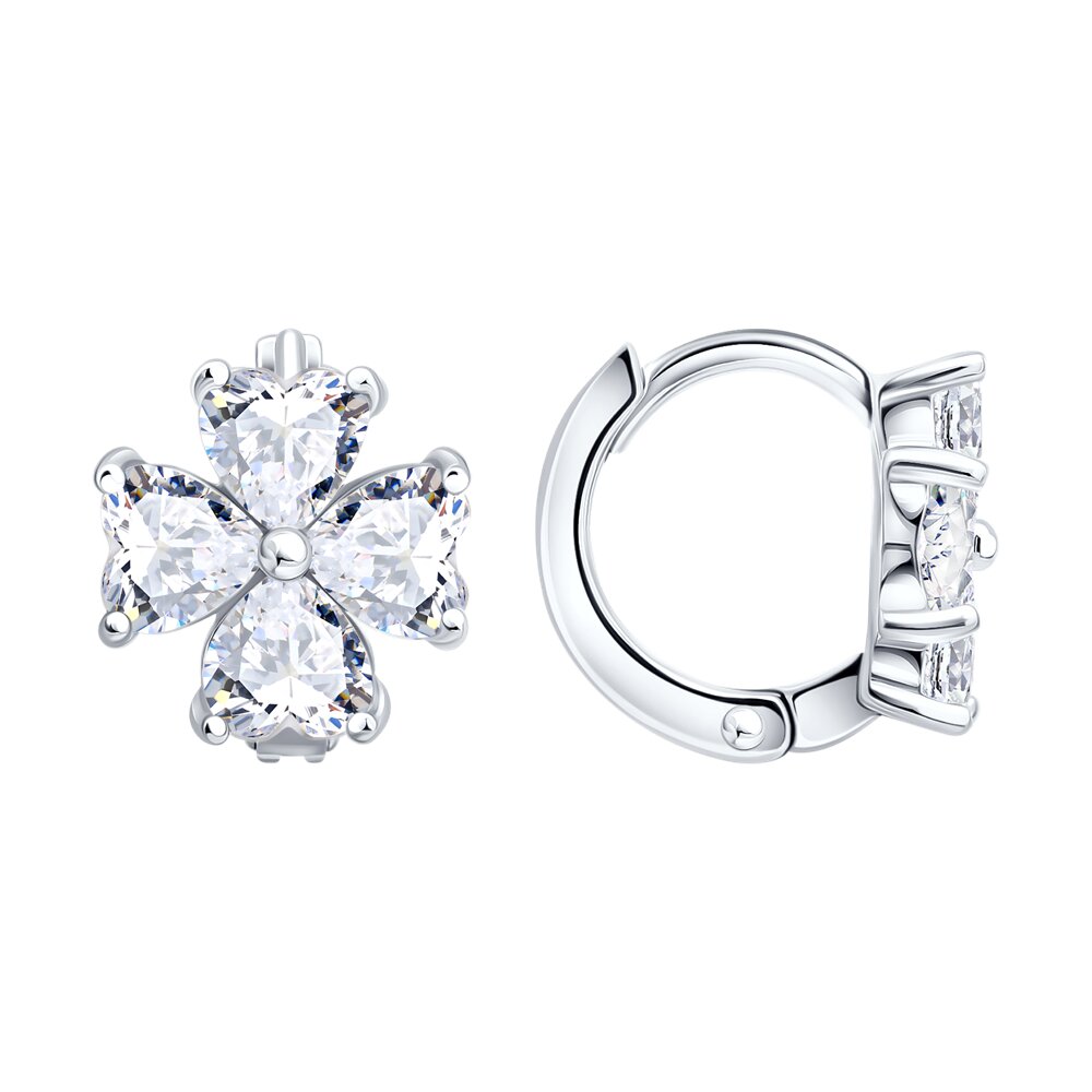 Серьги "Цветы" с фианитами из серебра 925 пробы арт. 94027659-91