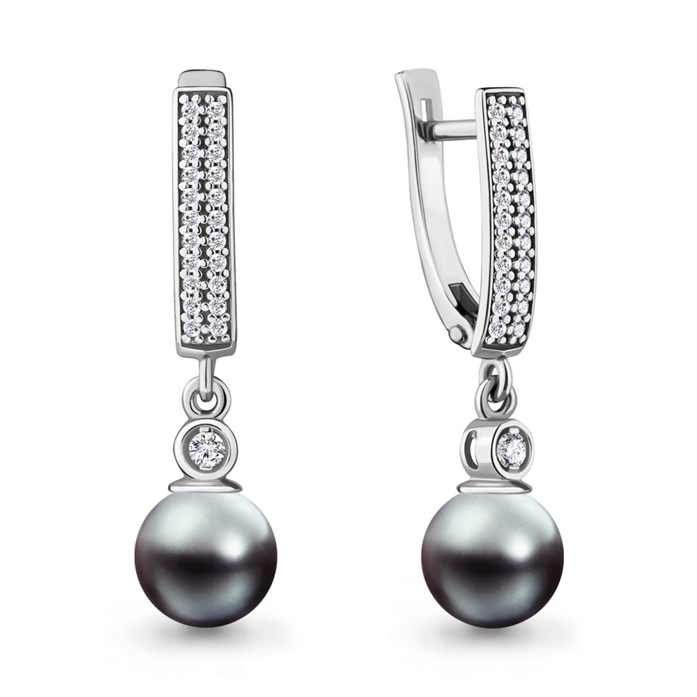 Серьги с жемчугом и бриллиантами из белого золота 585 пробы арт. 940539Ч.2