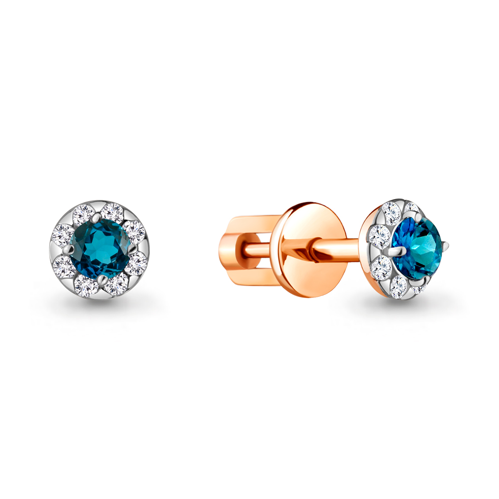 Серьги с топазом London Blue и бриллиантами из золота 585 пробы арт. 942555к.1
