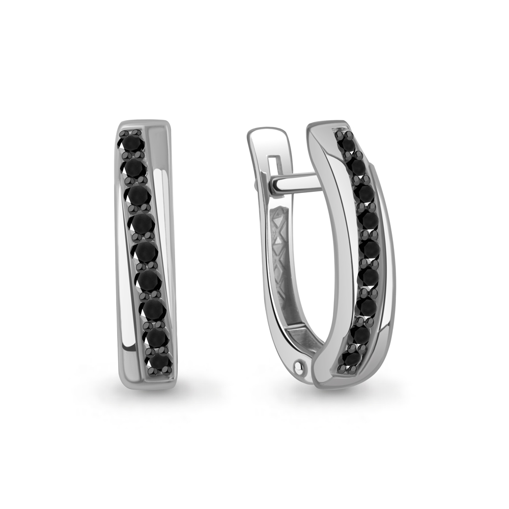 Серьги с черными бриллиантами из белого золота 585 пробы арт. 943242Ч.2