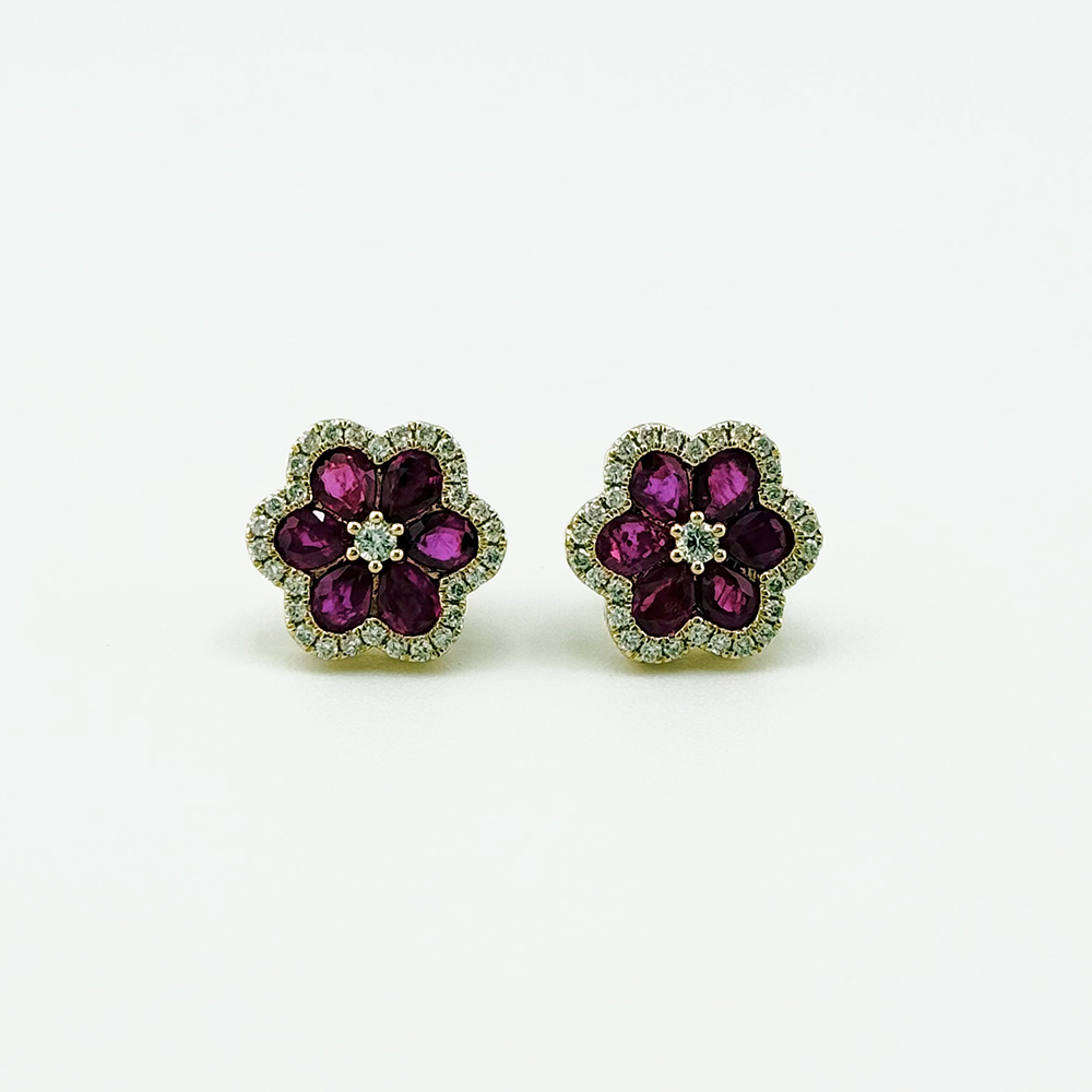 Серьги "Цветы" с рубинами и бриллиантами из желтого золота 585 пробы арт. CE41753-WD-RU-YG