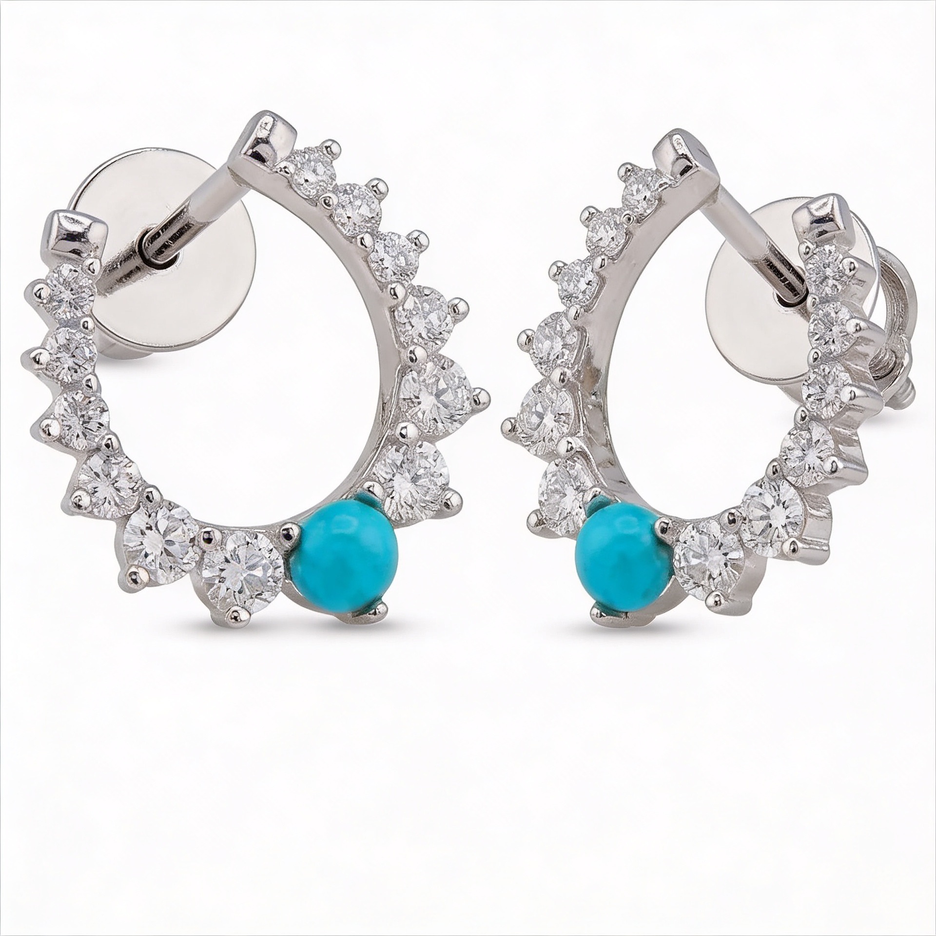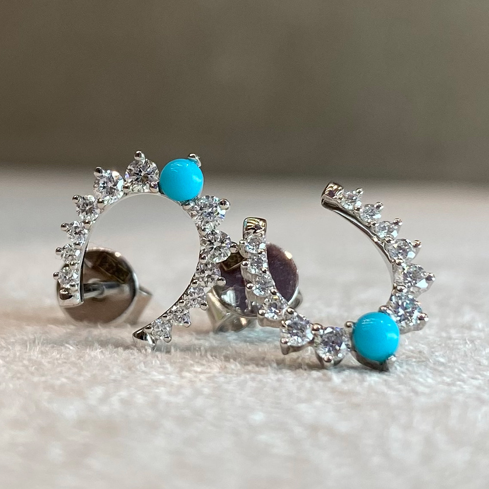 Серьги с бирюзой и бриллиантами из белого золота 585 пробы арт. CE43772-WD-TQ