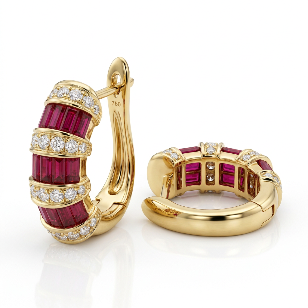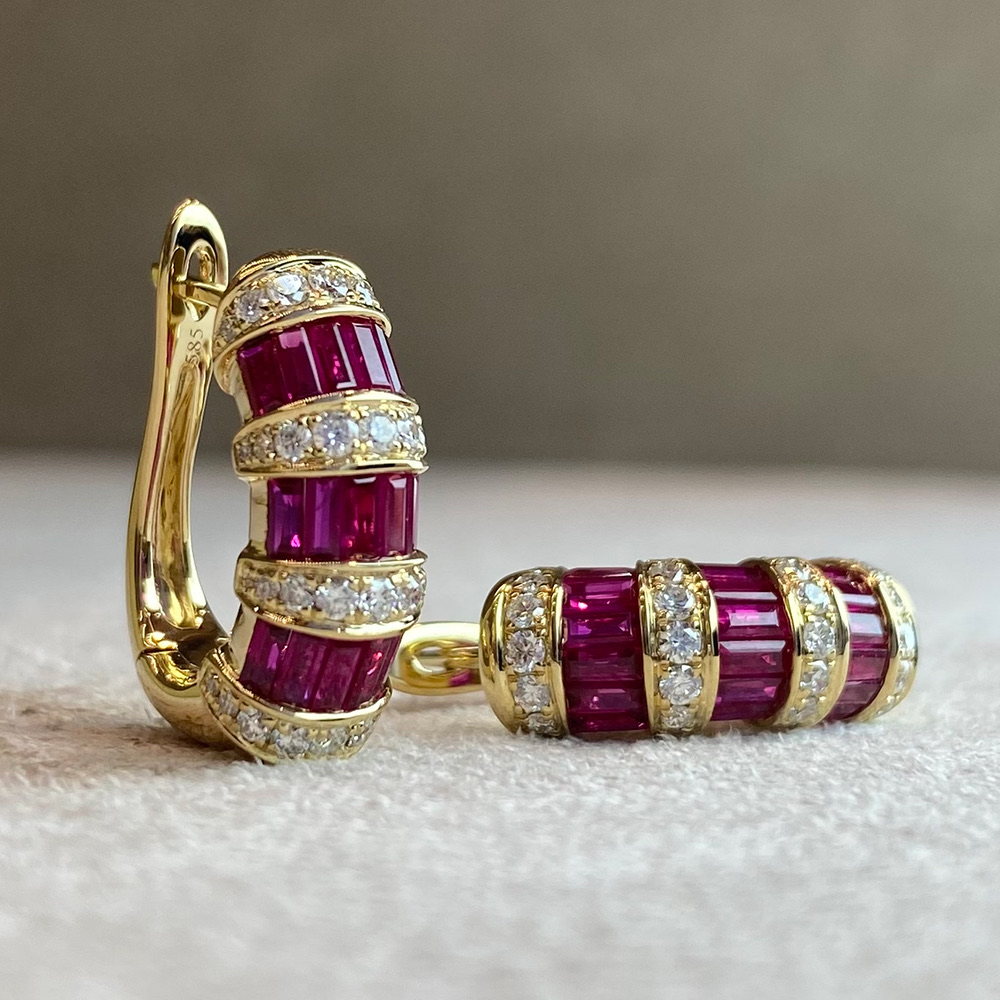 Серьги с рубинами и бриллиантами из желтого золота 585 пробы арт. CE44333A-WD-RU-YG