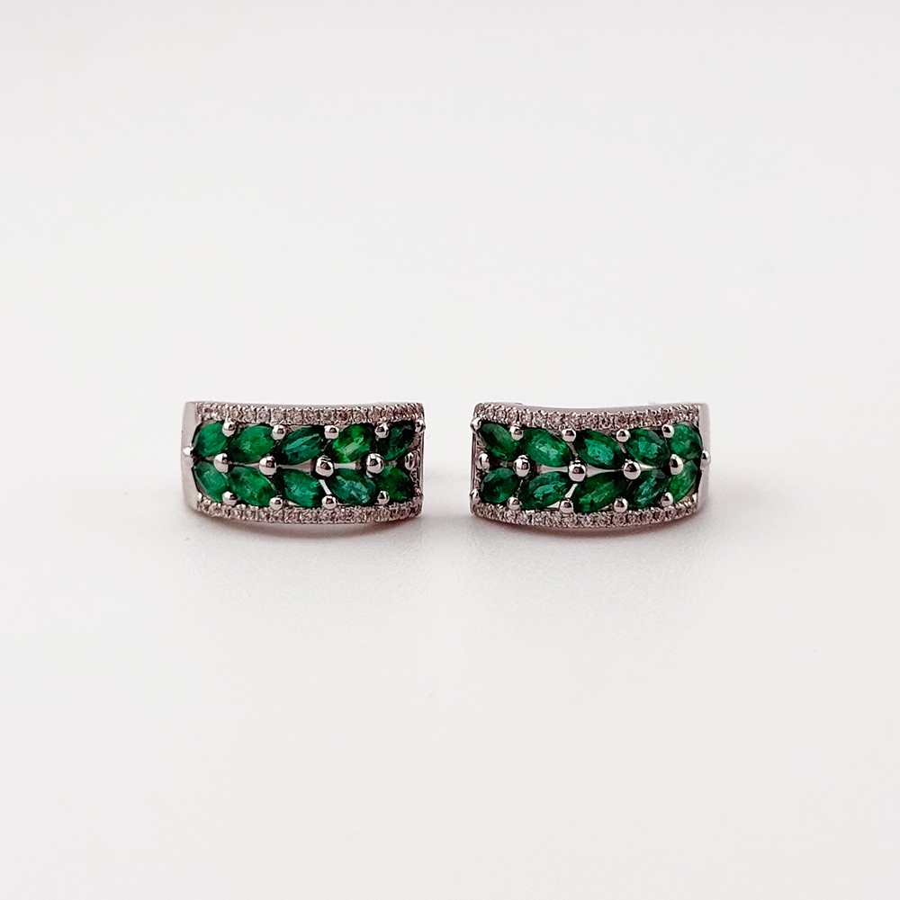 Серьги с изумрудами и бриллиантами из белого золота 585 пробы арт. CE44352-WD-EM