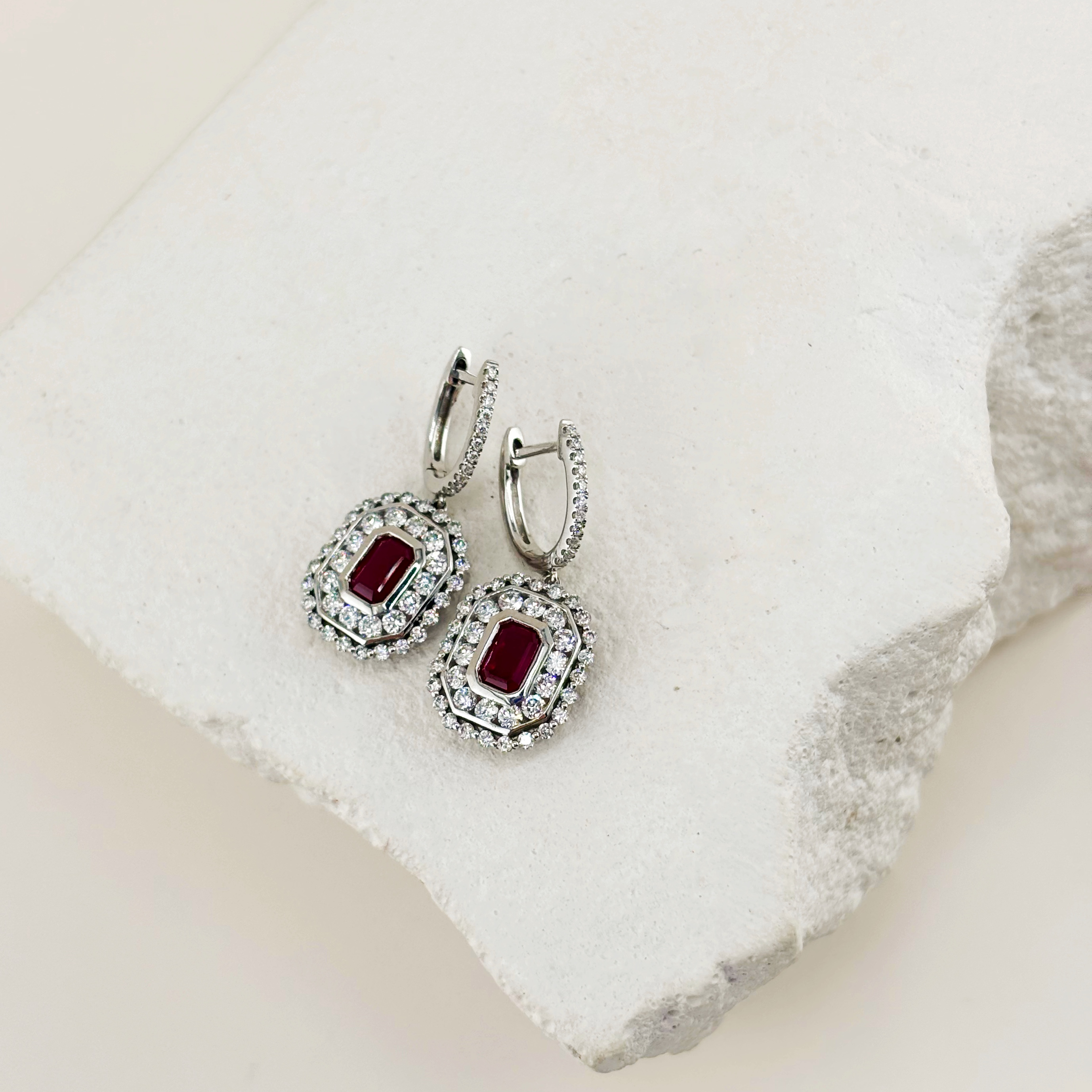 Серьги с рубинами и бриллиантами из белого золота 585 пробы арт. CE45684-WD-RU