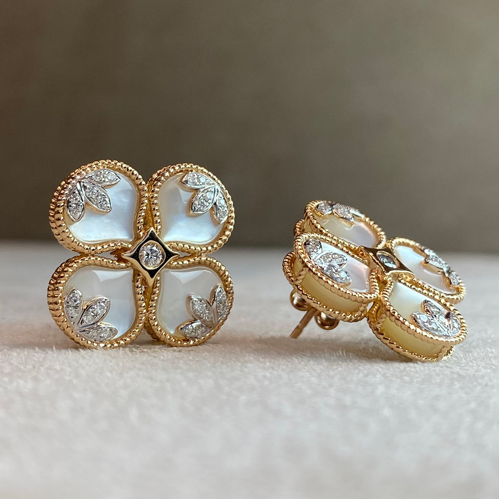 Серьги "Цветы" с перламутром и бриллиантами из золота 585 пробы арт. CE46990-WD-WSHL-RG
