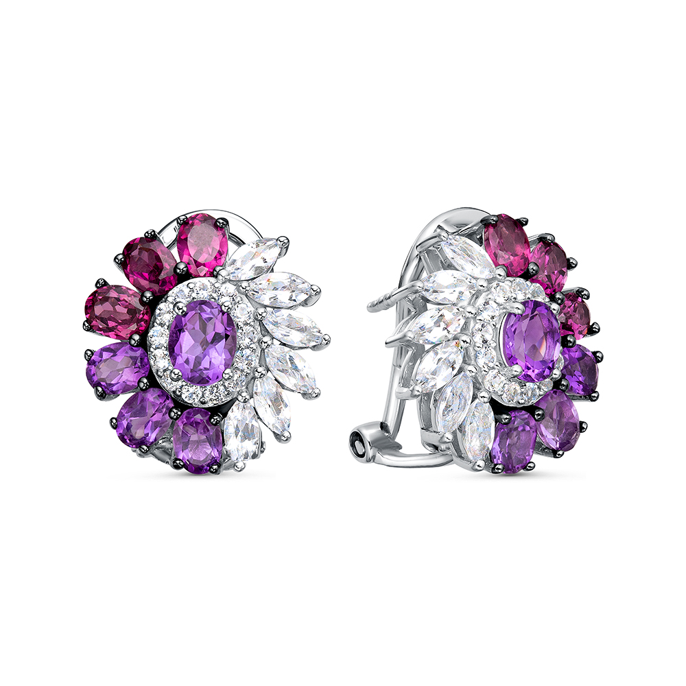 Серьги с аметистом, топазами и родолитом из серебра 925 пробы арт. E-05715-88-S00_SR_AM_RH_W