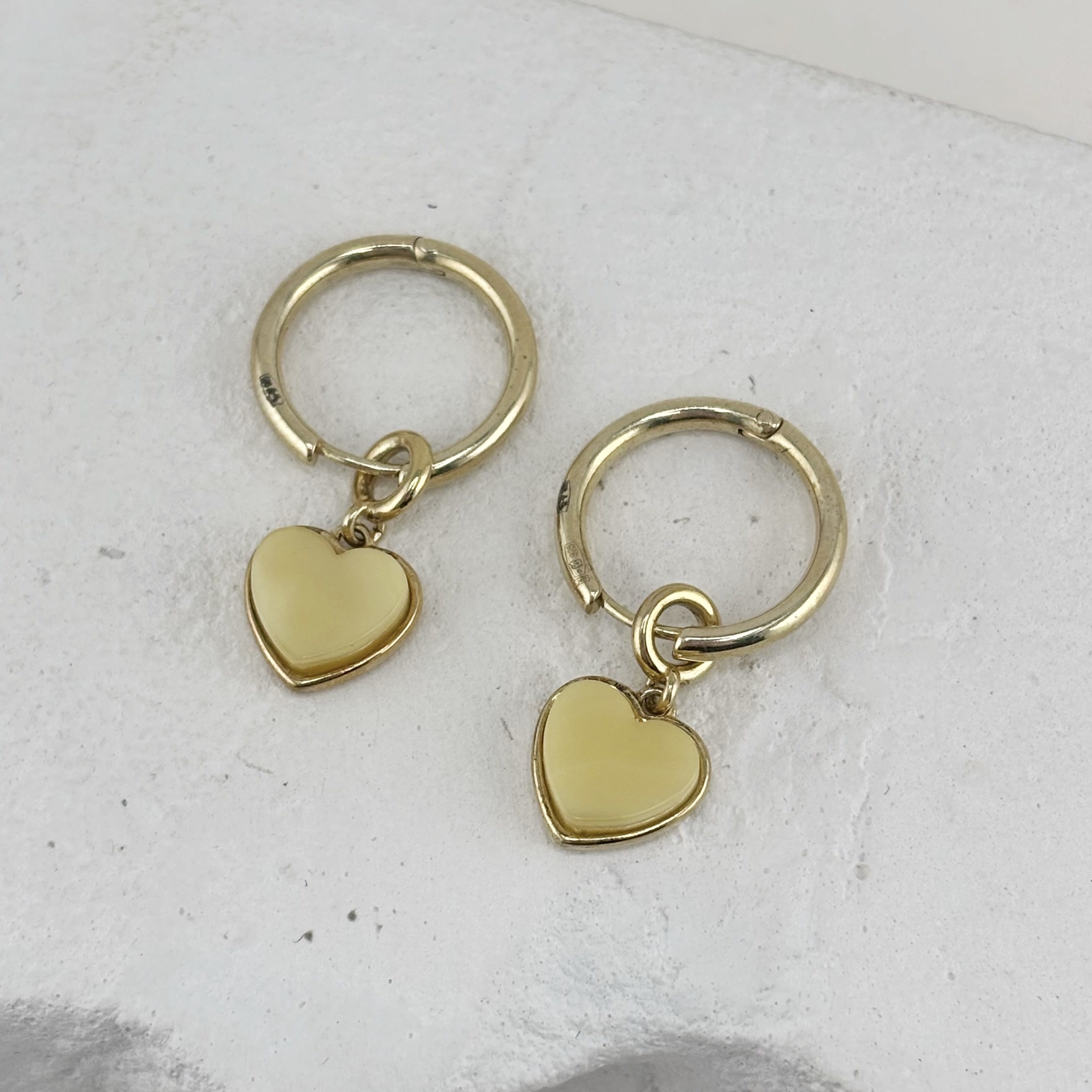 Серьги "Сердца" с янтарем из серебра 925 пробы с позолотой арт. E22037ZM