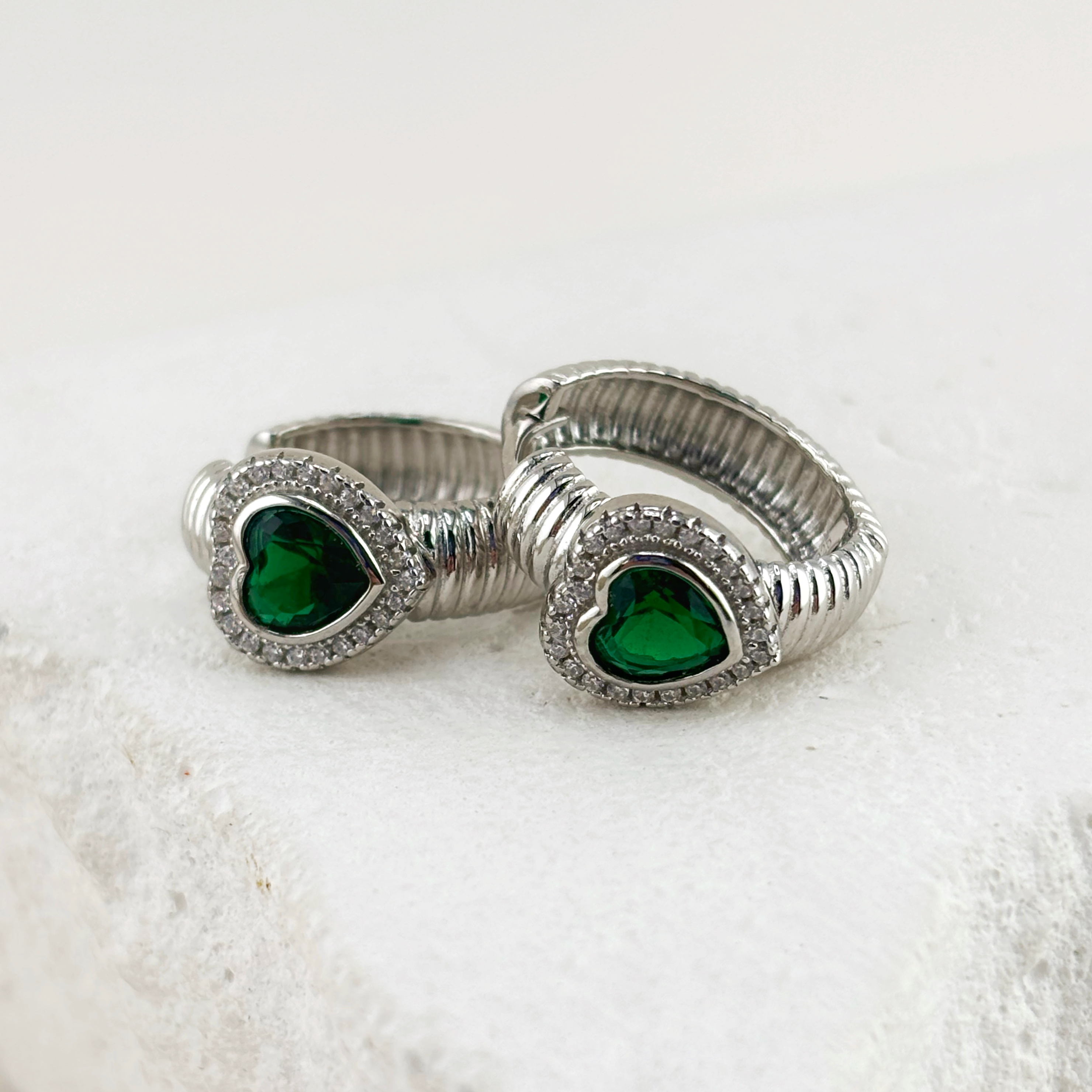 Серьги "Сердца" с фианитами и ювелирным стеклом из серебра 925 пробы арт. E40939-BW