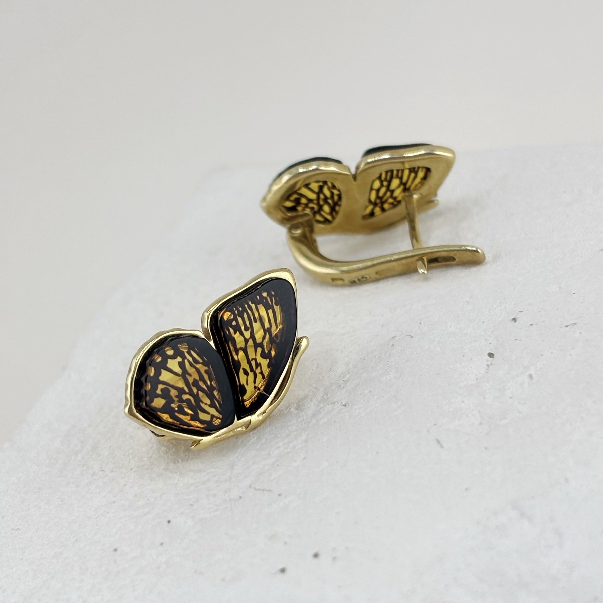 Серьги "Бабочки" с янтарем из серебра 925 пробы с позолотой арт. E9154ZO