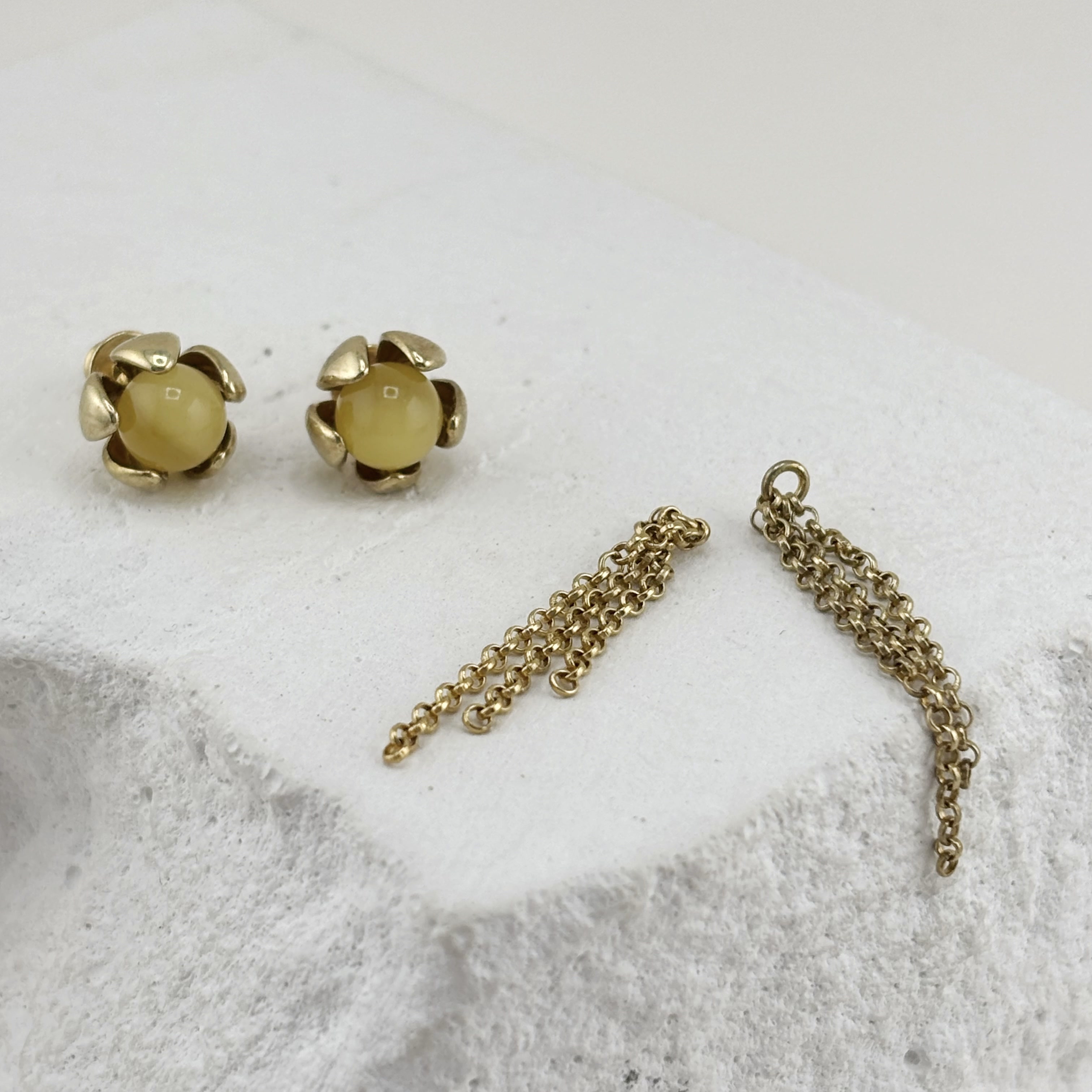 Серьги с янтарем из серебра 925 пробы с позолотой арт. E9321ZM