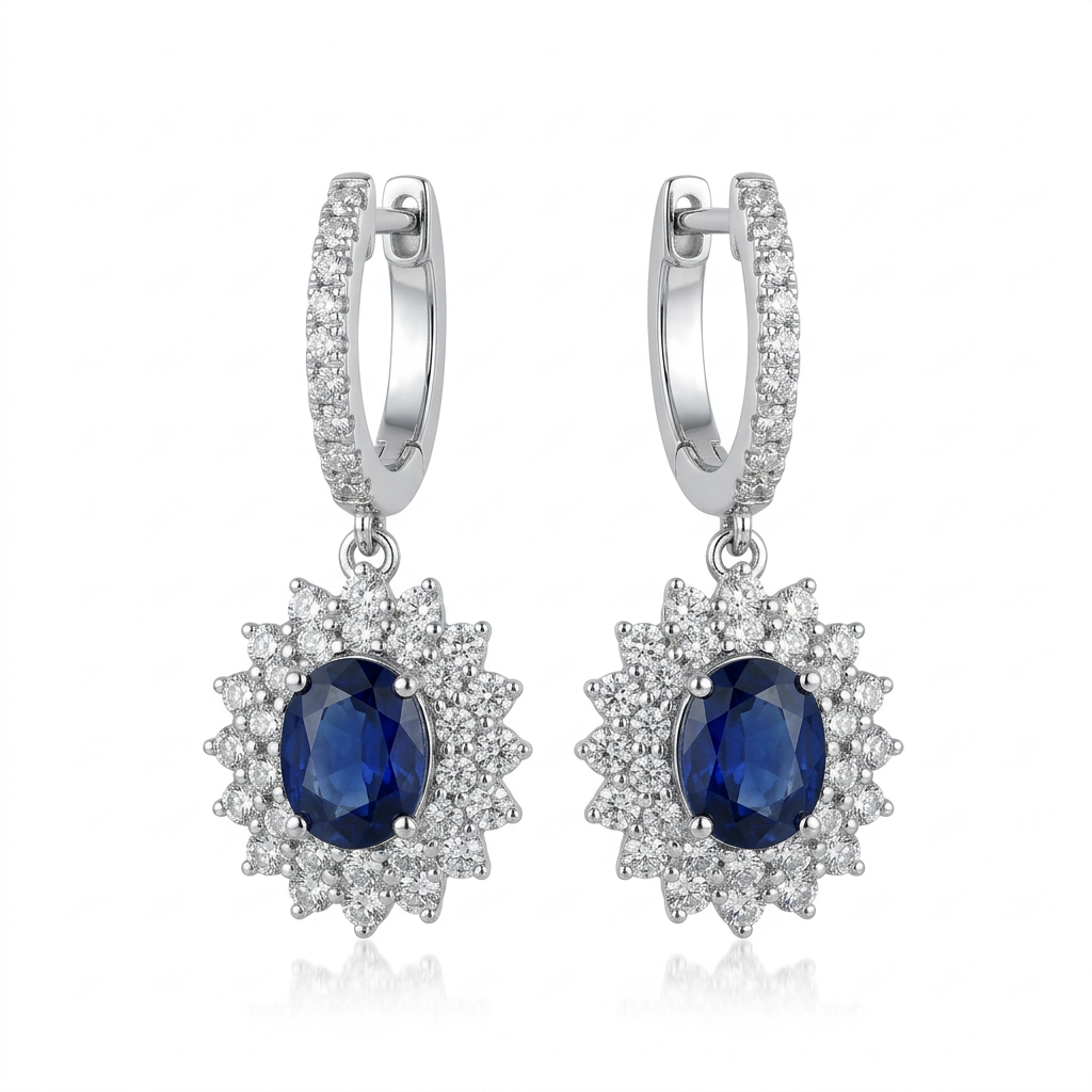 Серьги с сапфирами и бриллиантами из белого золота 585 пробы арт. ER097509-114