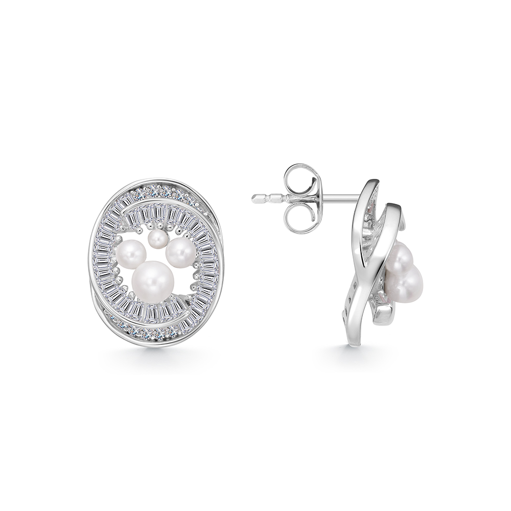 Серьги с жемчугом и фианитами из серебра 925 пробы арт. ER1074