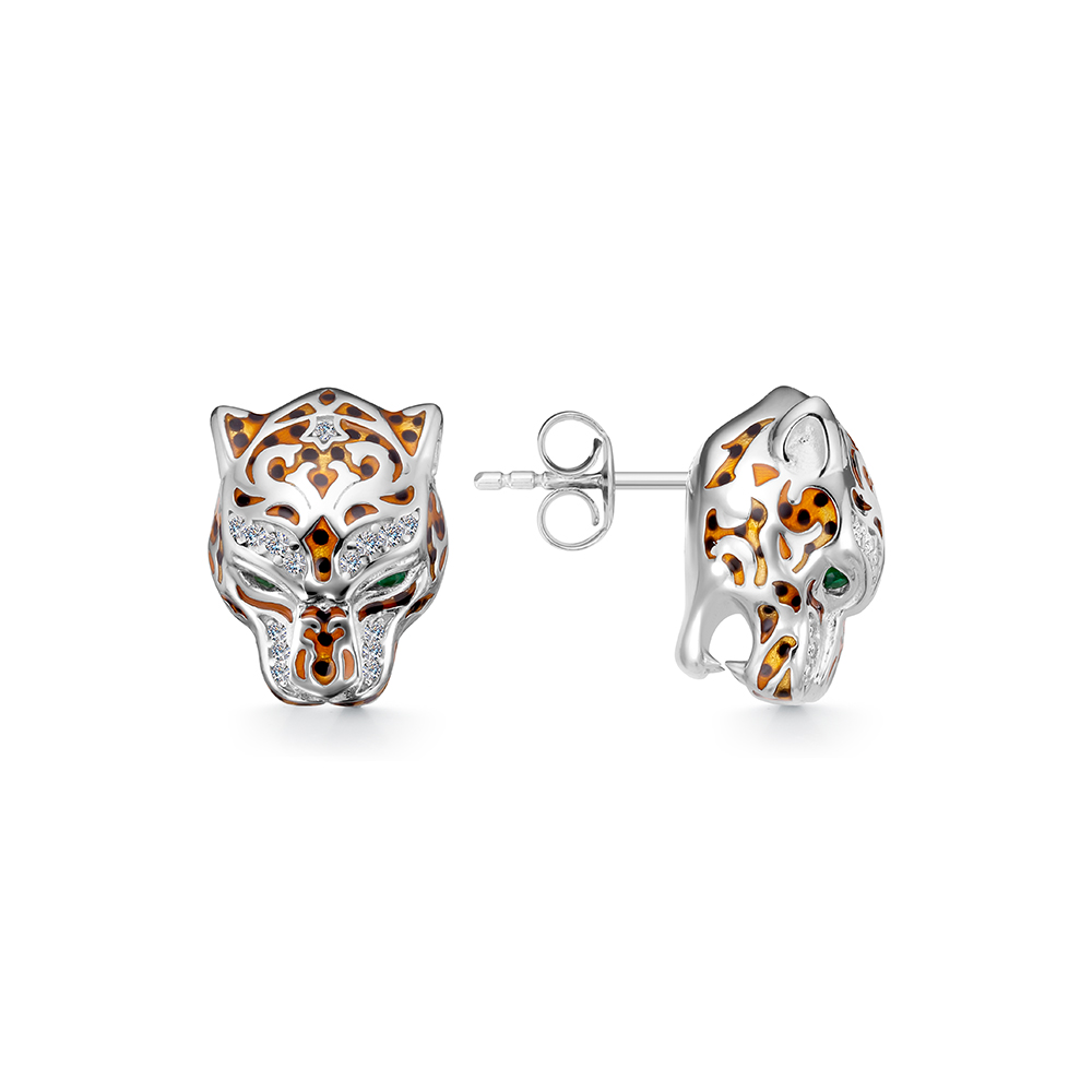 Серьги "Пантеры" с фианитами и эмалью из серебра 925 пробы арт. ER1092