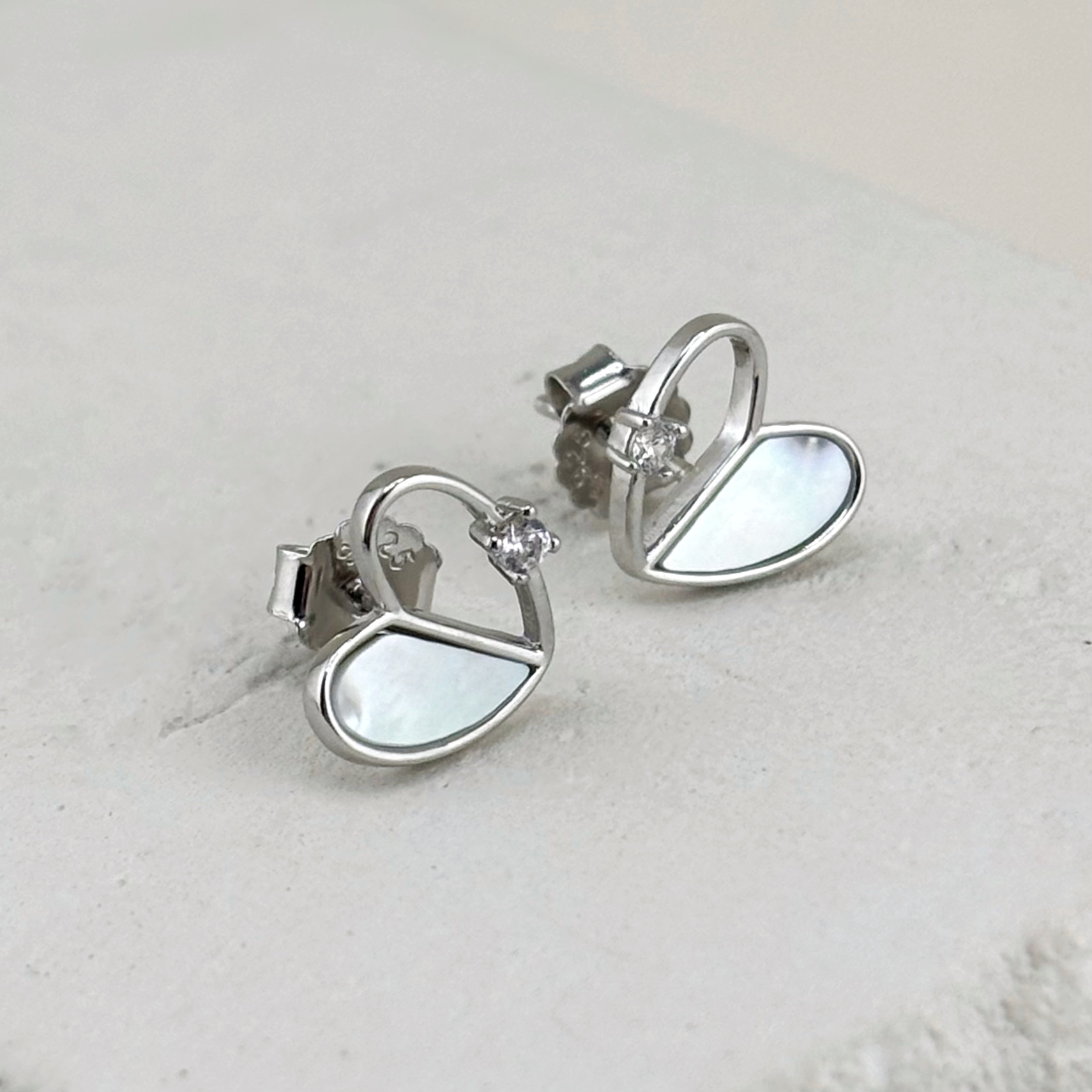 Серьги "Сердца" с перламутром и фианитами из серебра 925 пробы арт. ER1109