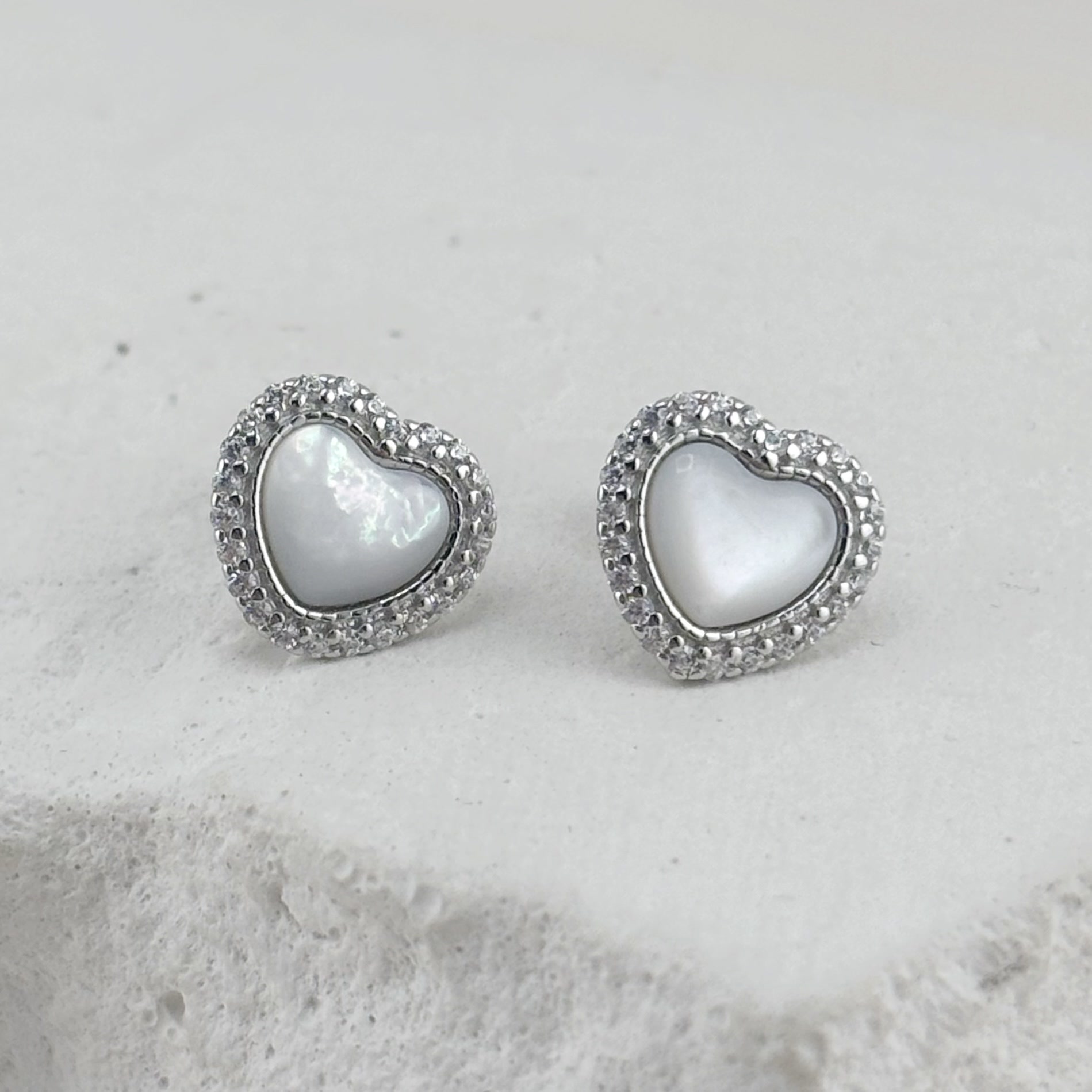 Серьги "Сердца" с перламутром и фианитами из серебра 925 пробы арт. ER1135