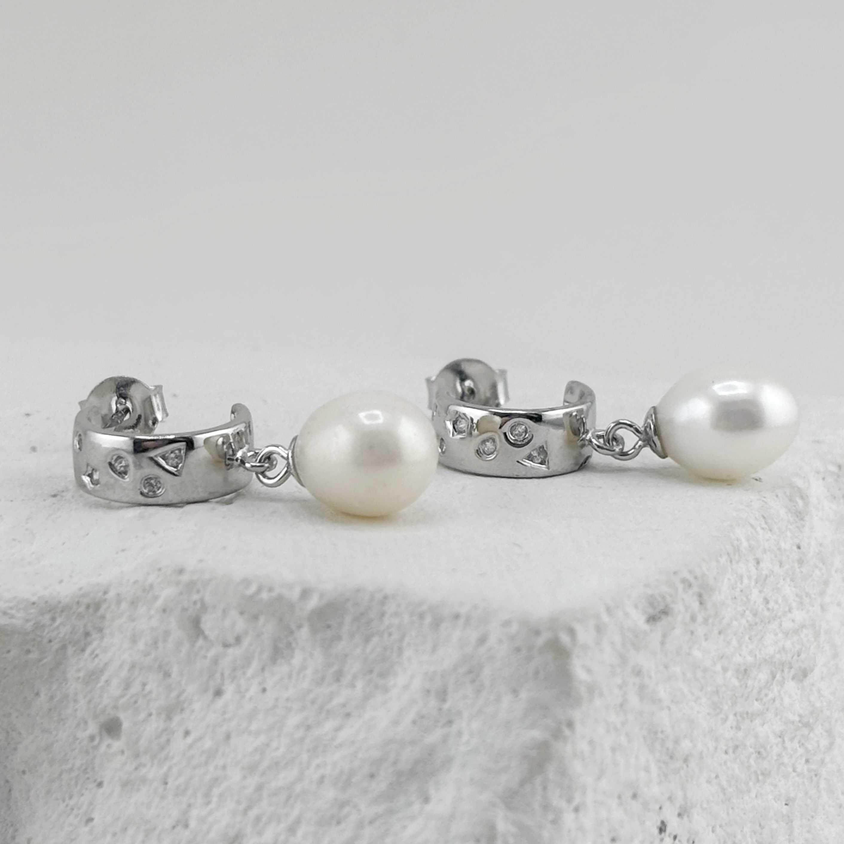 Серьги с жемчугом и фианитами из серебра 925 пробы арт. ER1149