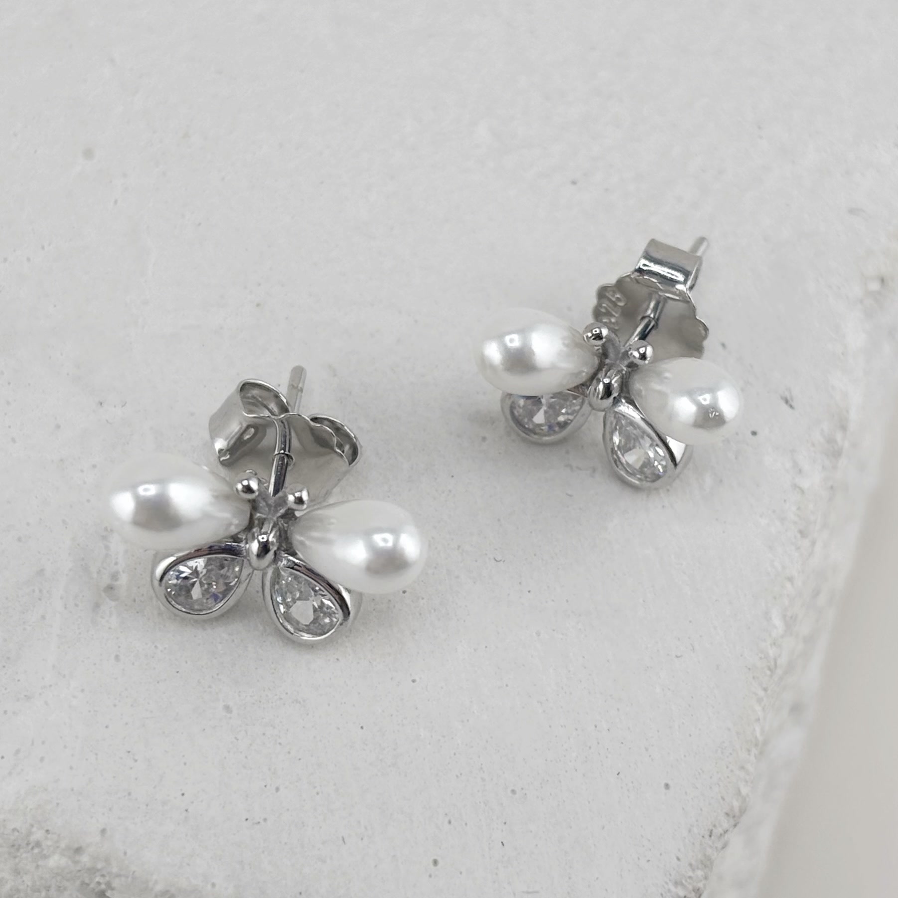 Серьги "Бабочки" с жемчугом и фианитами из серебра 925 пробы арт. ER1159