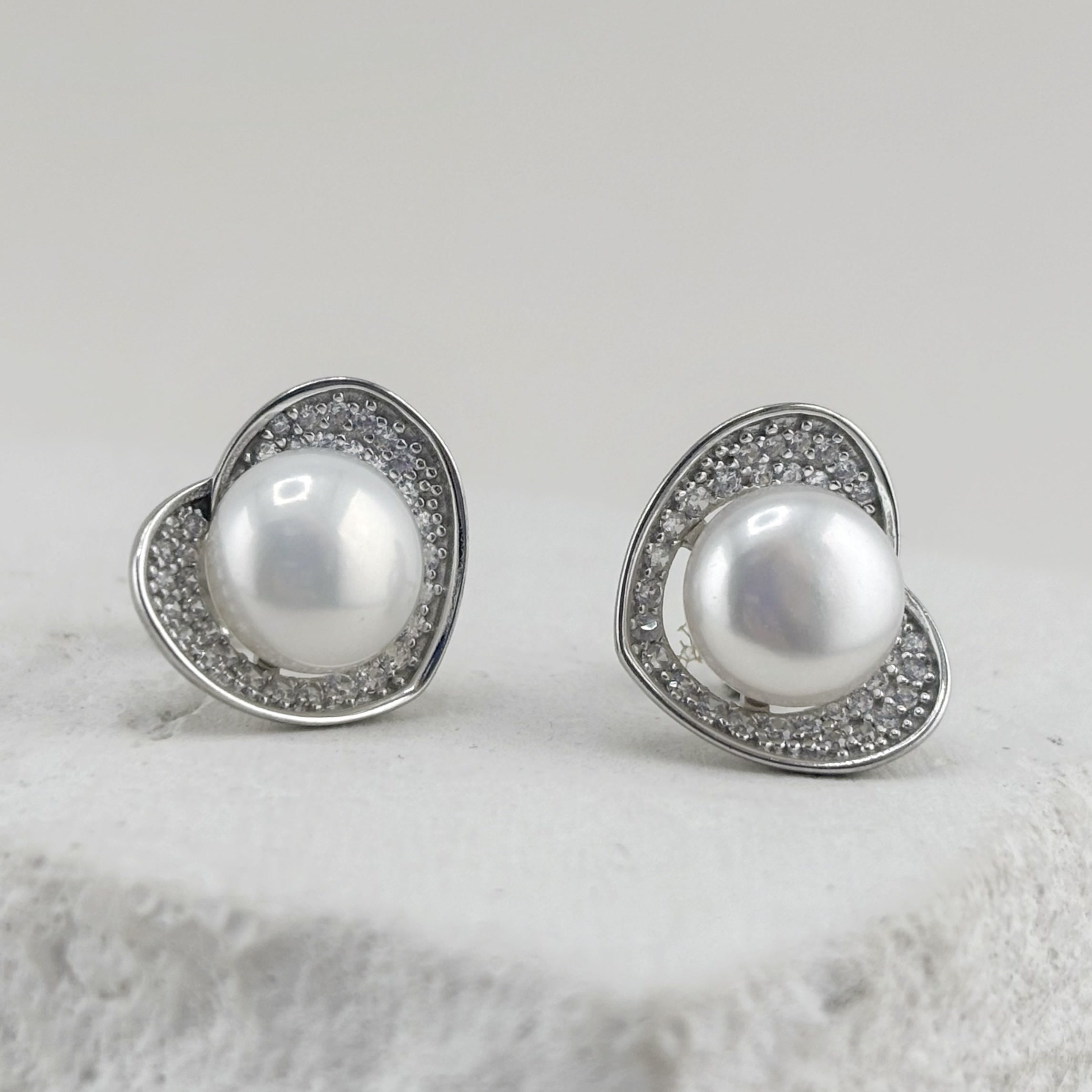 Серьги с жемчугом и фианитами из серебра 925 пробы арт. ER1166