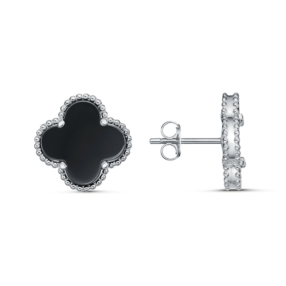 Серьги "Клевера" с ониксом из серебра 925 пробы арт. ER801