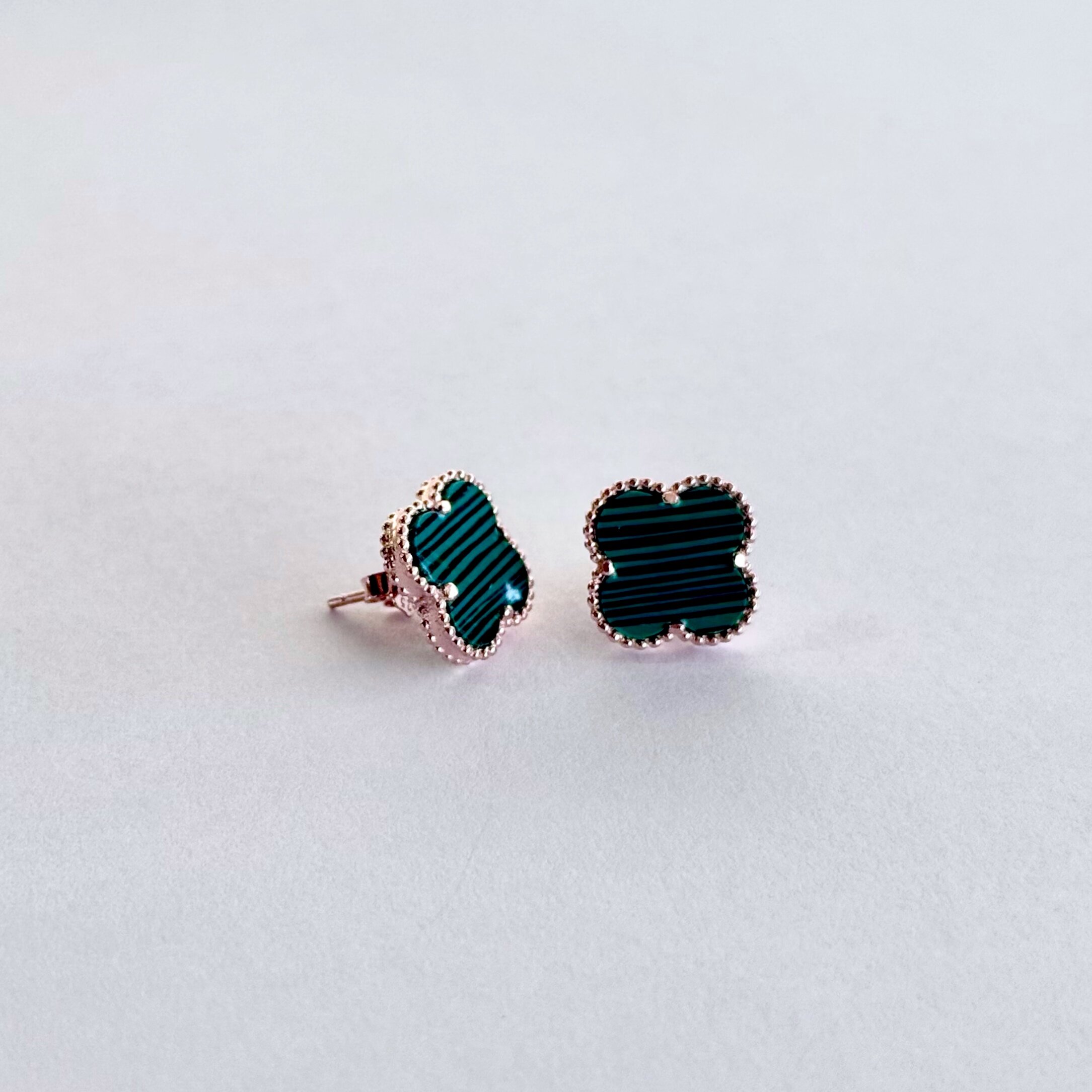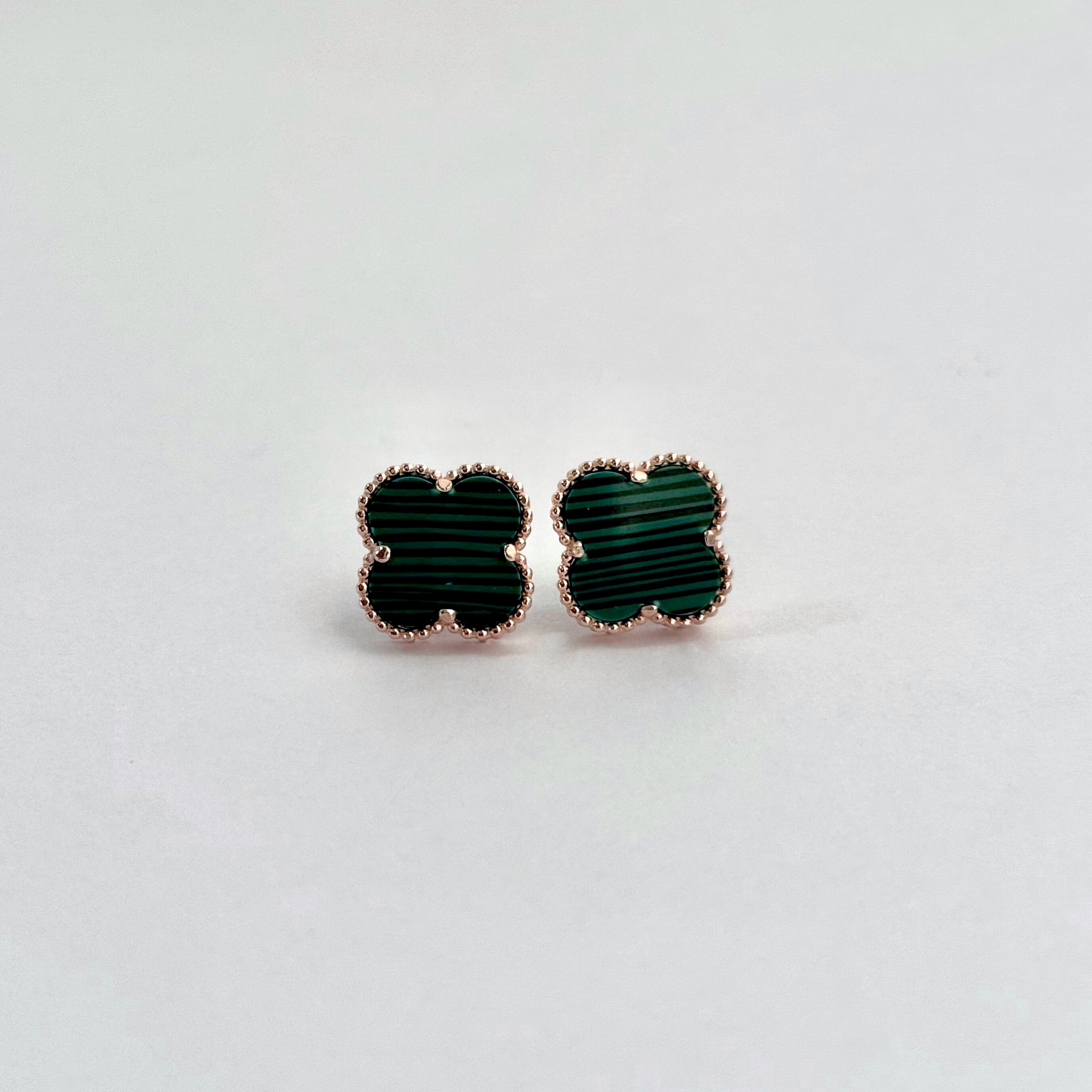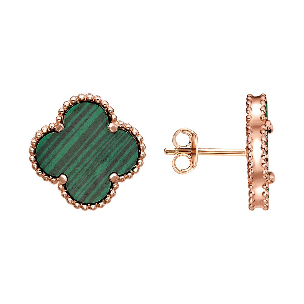 Серьги "Клевер" с малахитом из серебра 925 пробы с позолотой арт. ER860