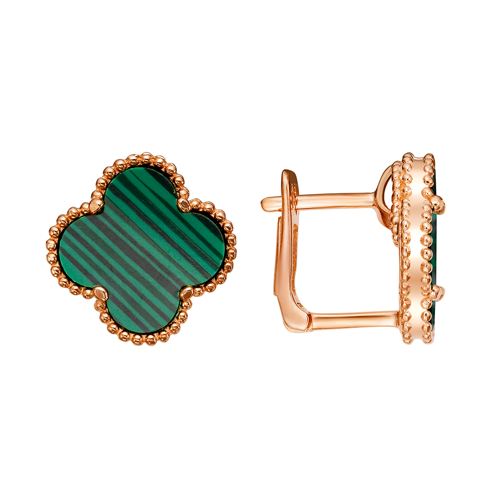 Серьги "Клевера" с малахитом из серебра 925 пробы с позолотой арт. ER866