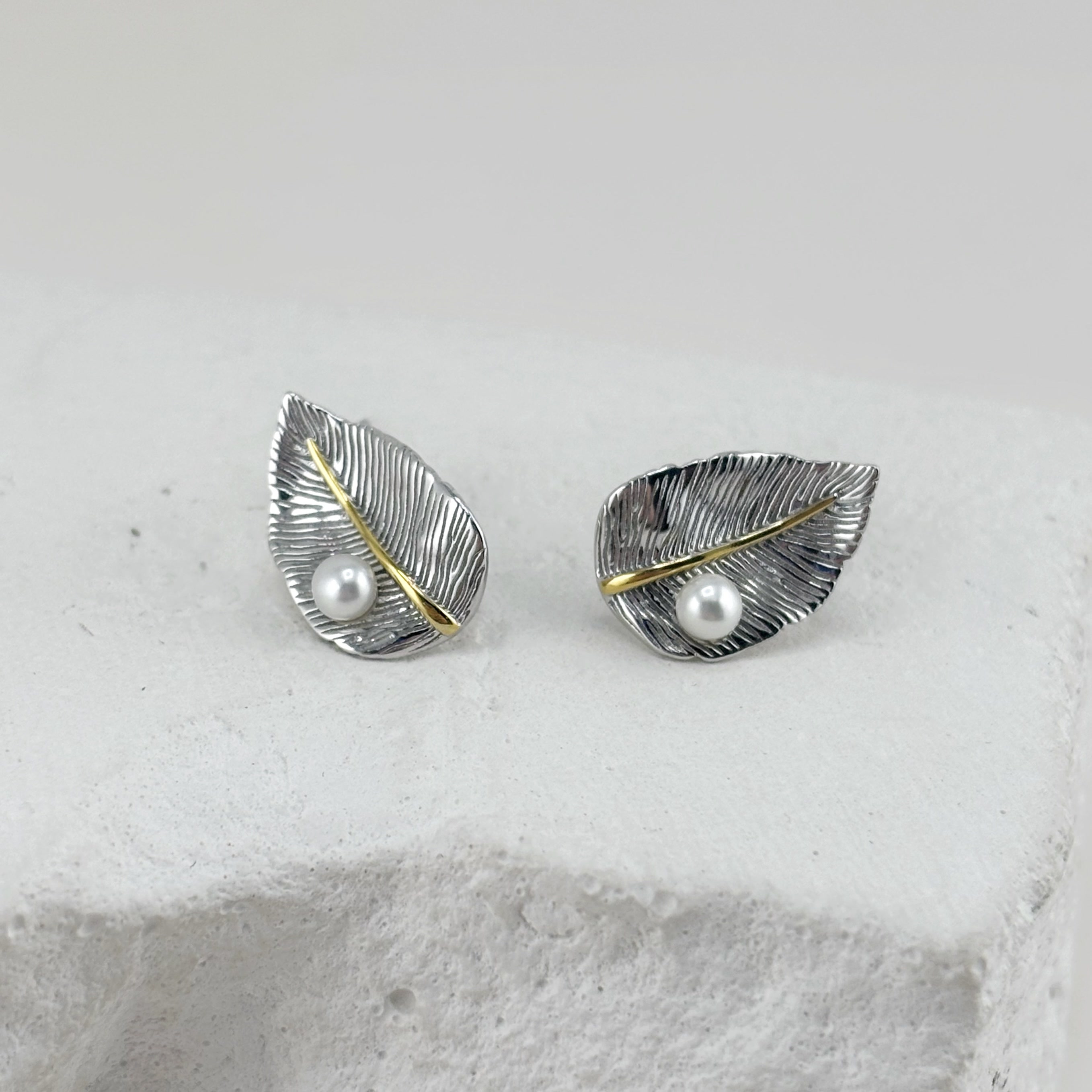 Серьги "Листья" с жемчугом из серебра 925 пробы с позолотой арт. HAE0564