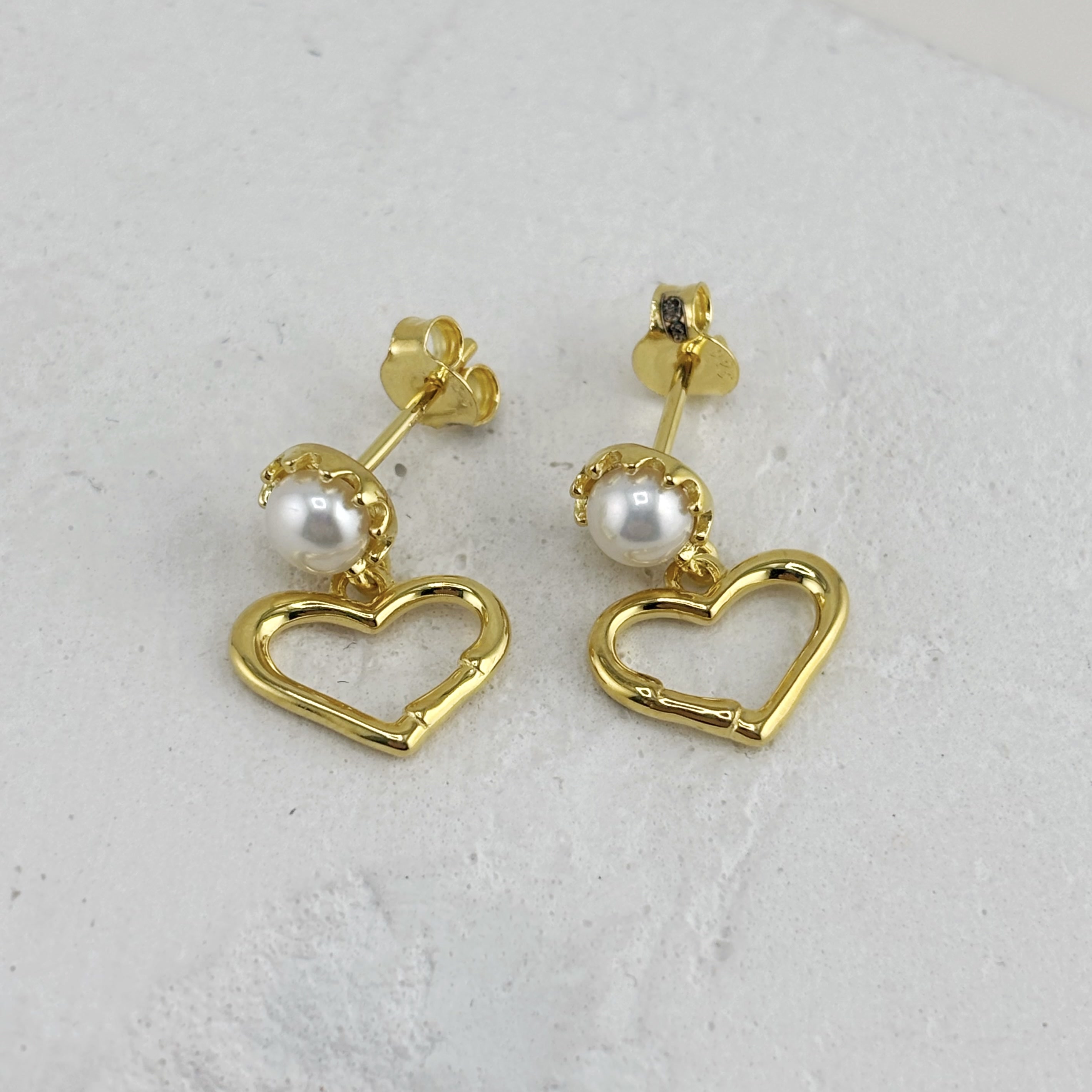 Серьги "Сердца" с жемчугом из серебра 925 пробы с позолотой арт. HAE0950