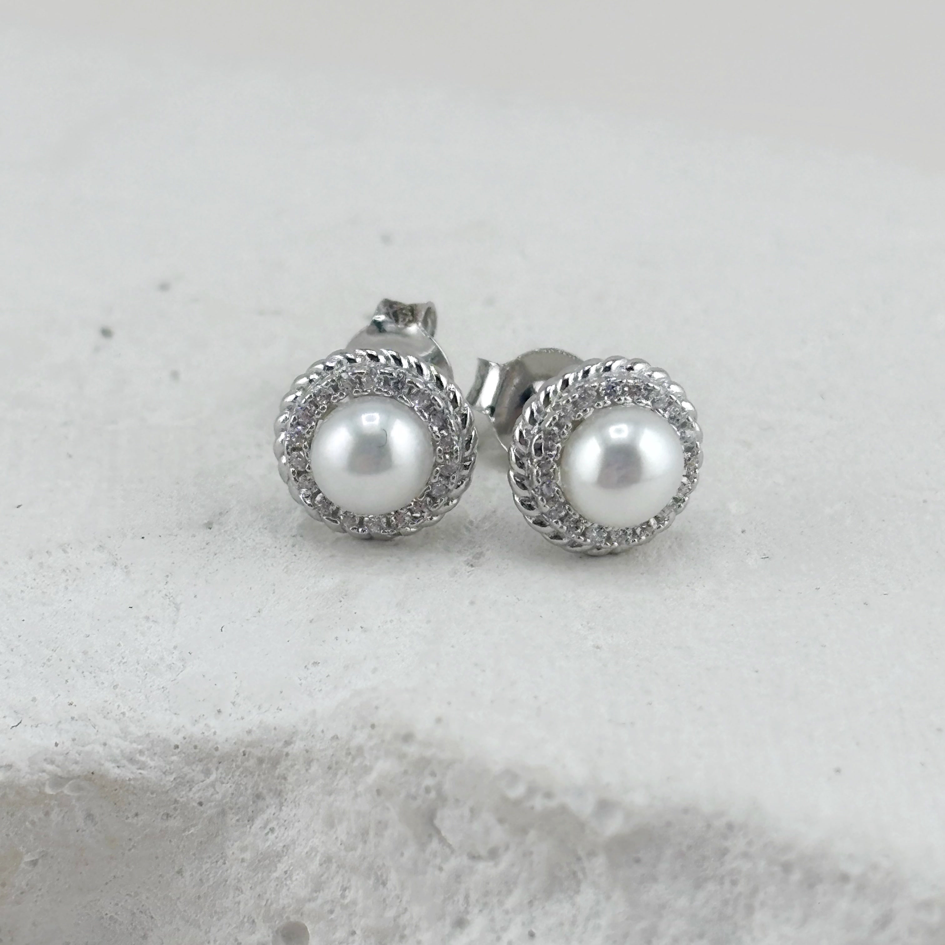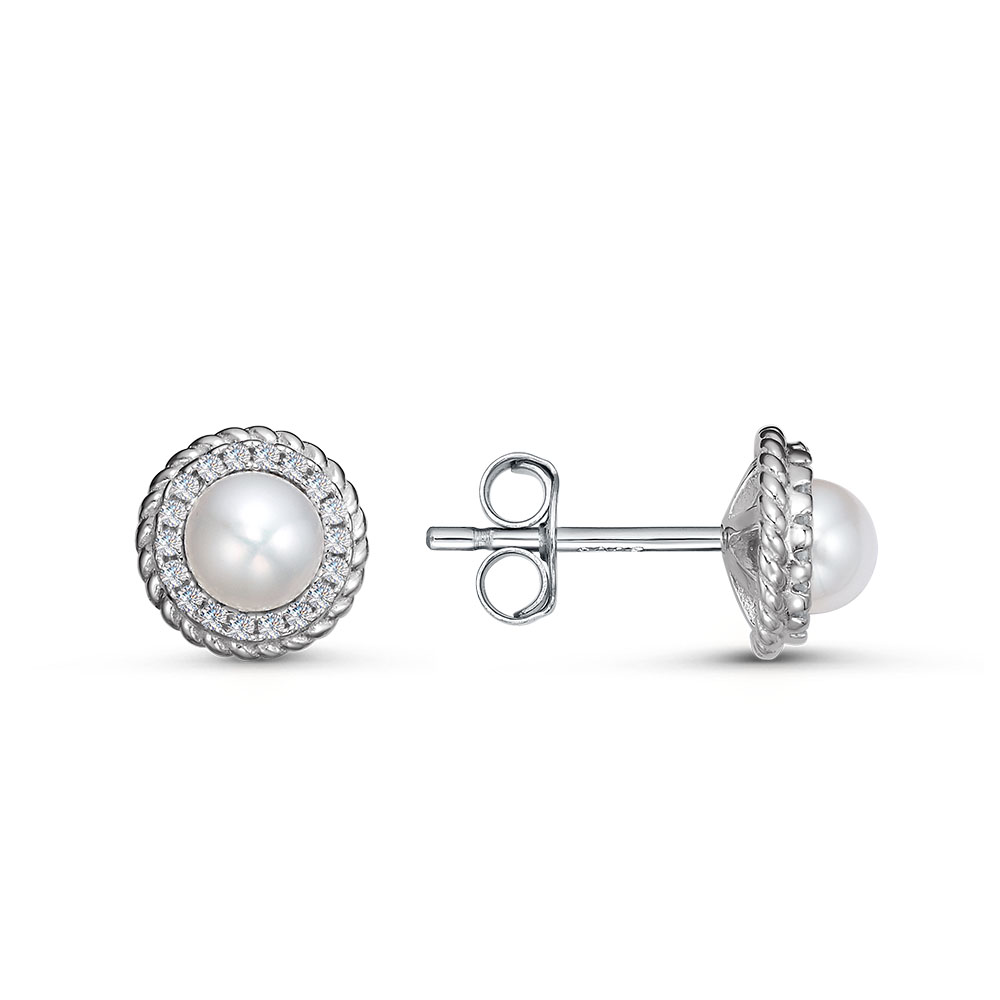 Серьги с жемчугом и фианитами из серебра 925 пробы арт. HAE1106