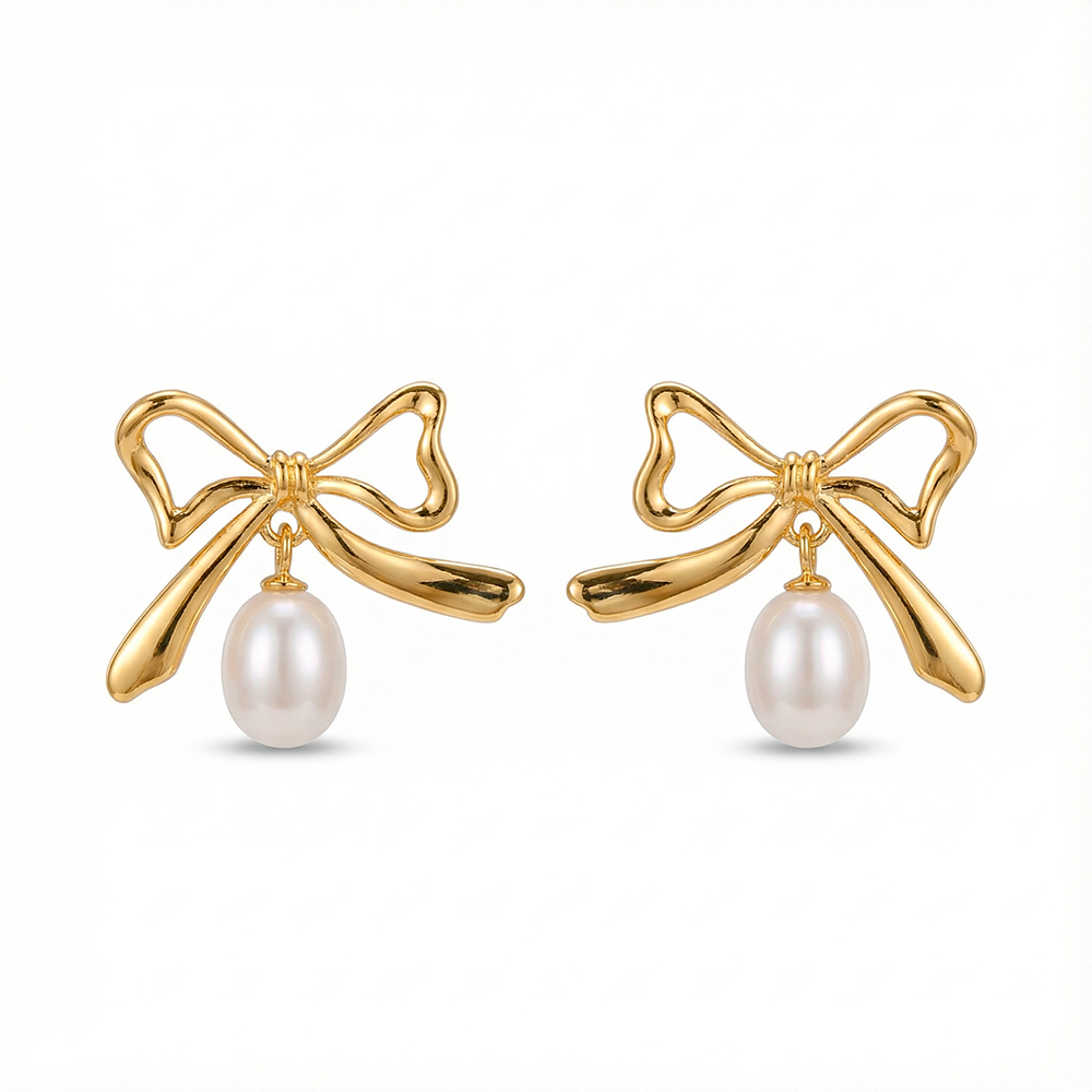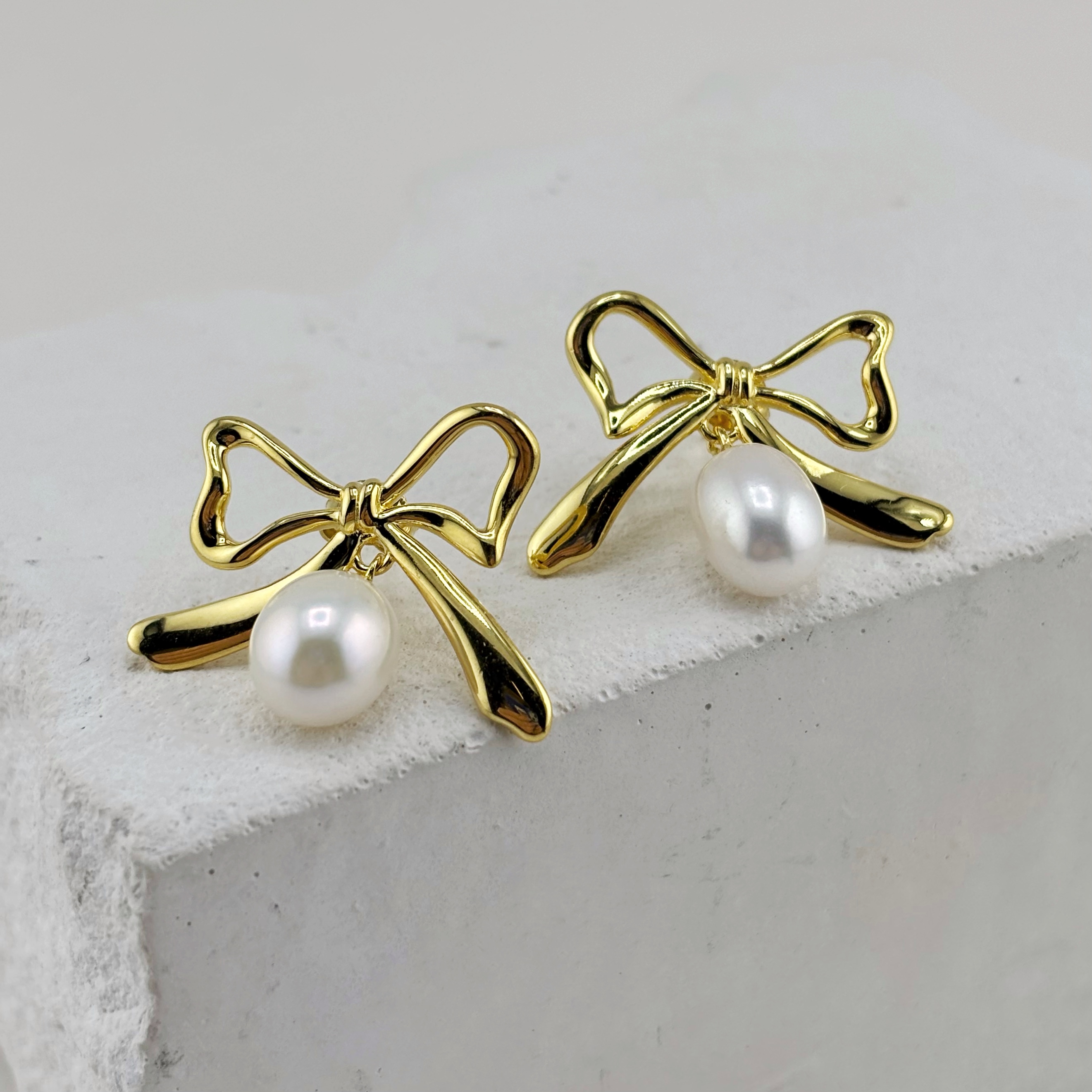 Серьги "Бантики" с жемчугом из серебра 925 пробы с позолотой арт. HAE1136