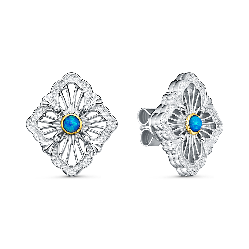Серьги "Цветы" с опалом из серебра 925 пробы арт. HPHT0045-EA_SR_OS_WG