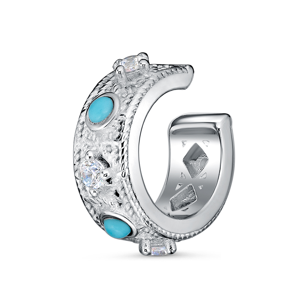 Серьга с фианитами и бирюзой из серебра 925 пробы арт. HPT3709-E_SR_TQ_WG