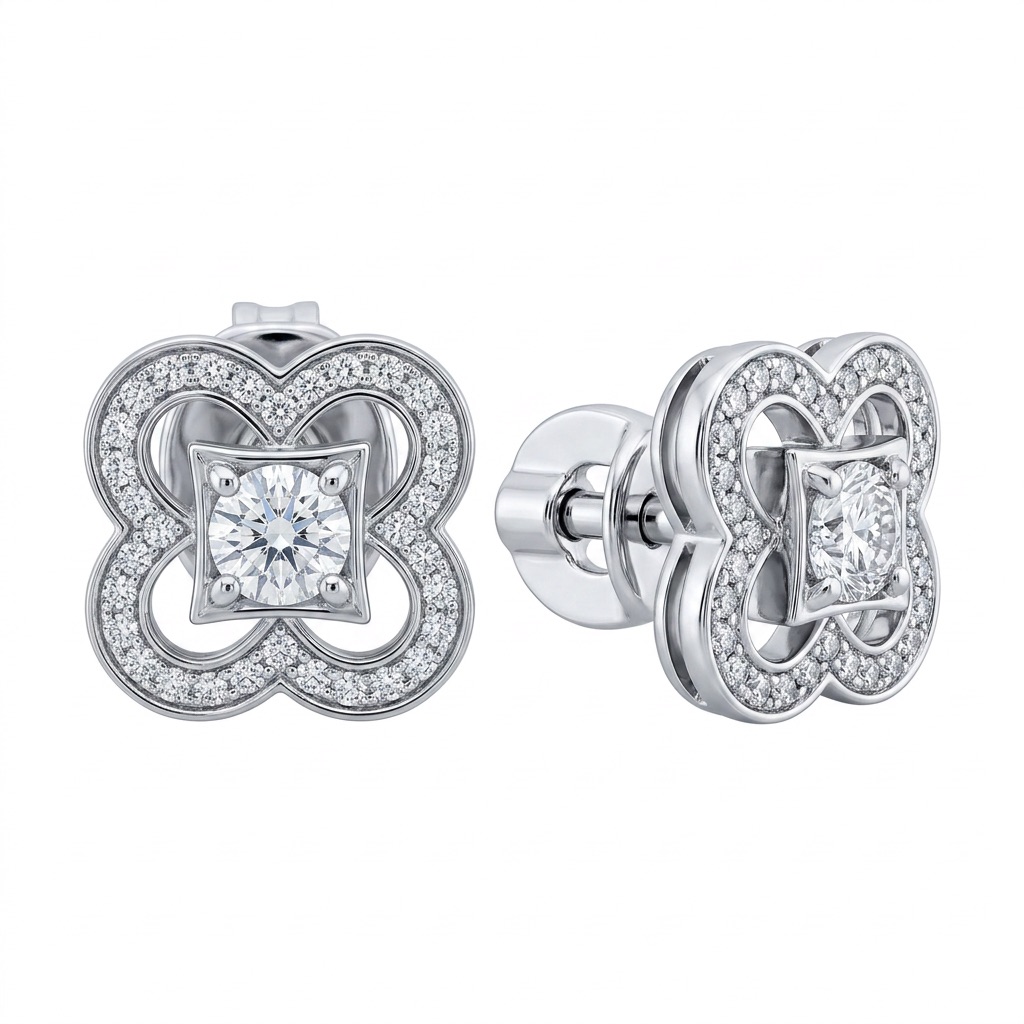 Серьги "Клевера" с бриллиантами из белого золота 585 пробы арт. С-1780-3-02