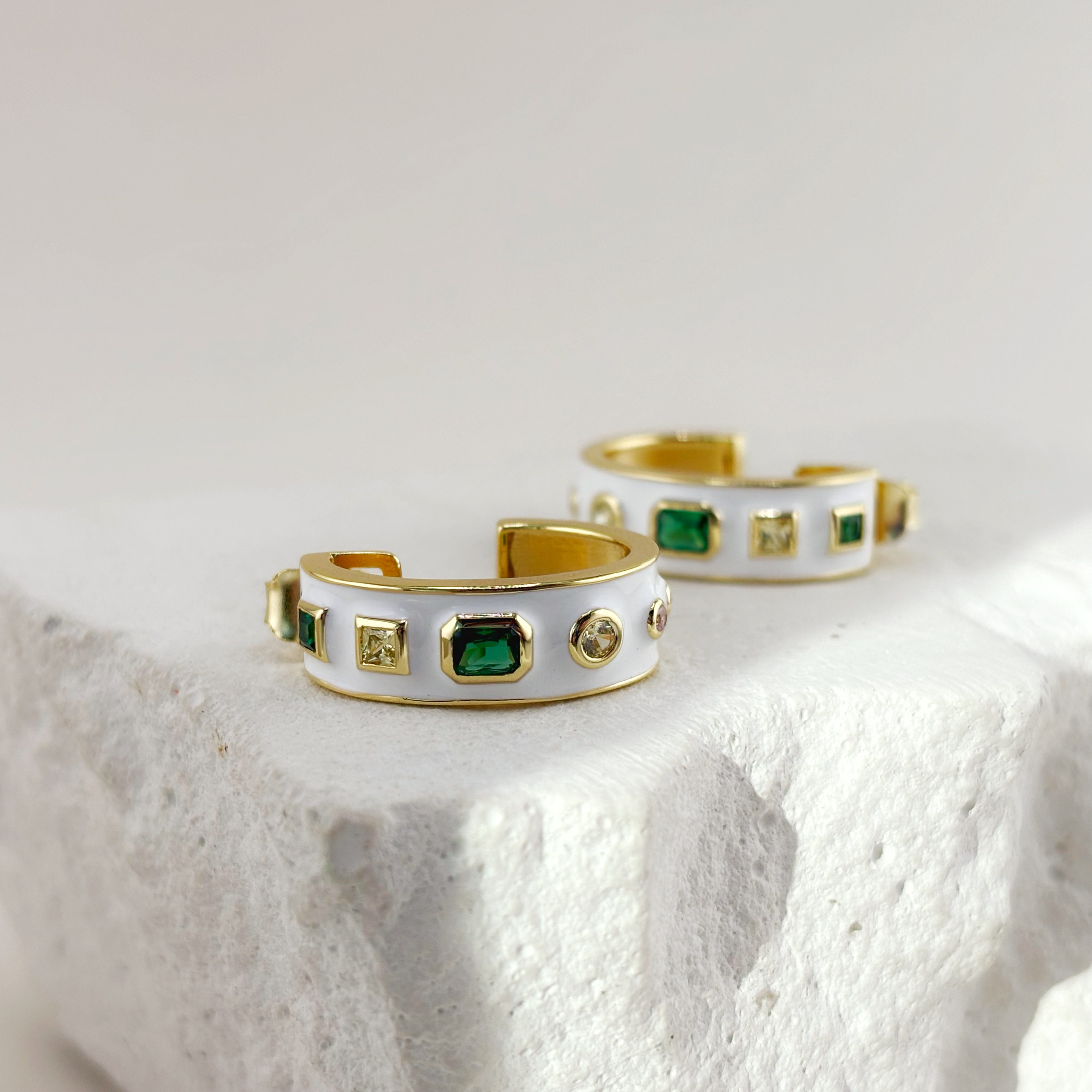 Серьги с фианитами и эмалью из серебра 925 пробы с позолотой арт. SE40323-BY
