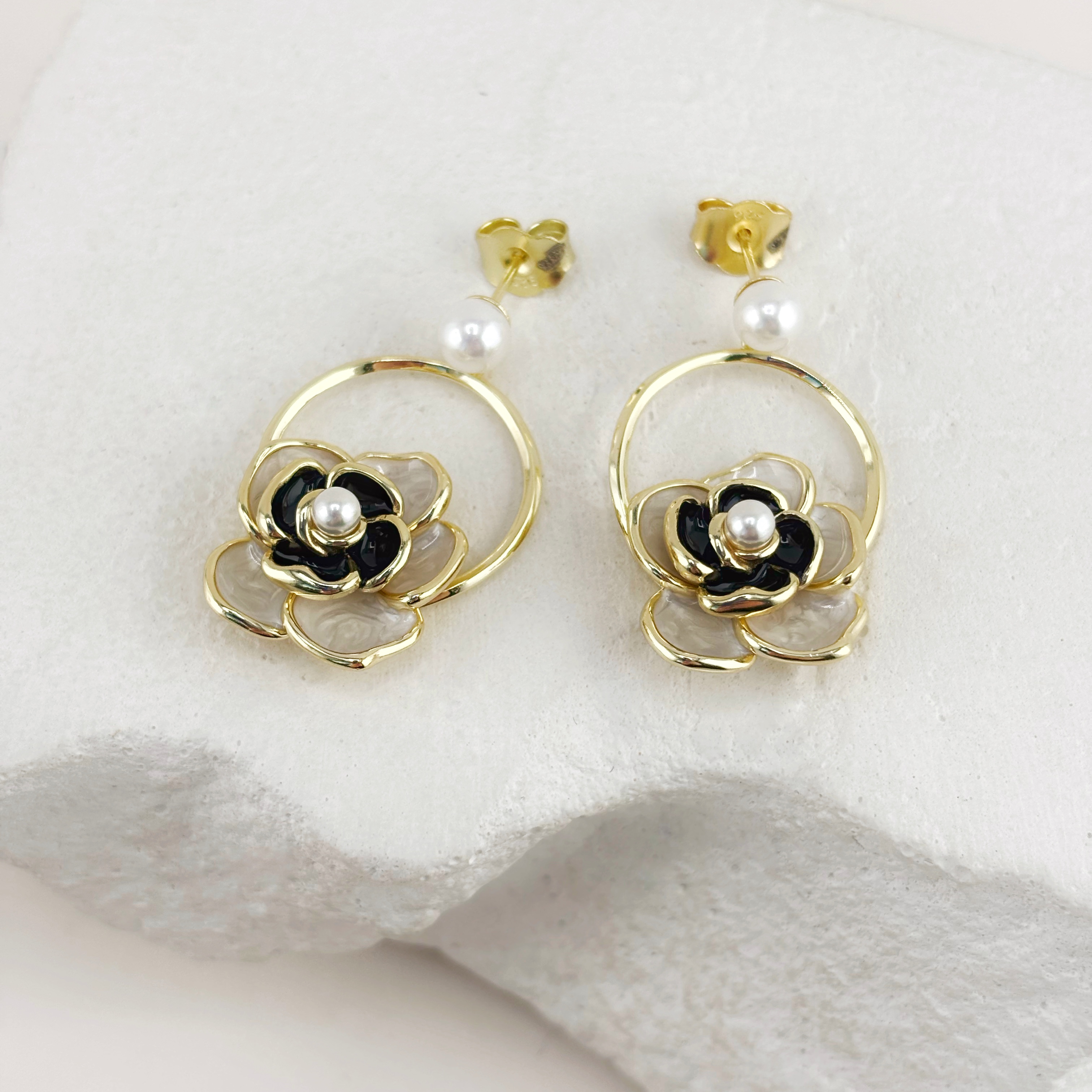 Серьги "Цветы" с эмалью и перламутром из серебра 925 пробы с позолотой арт. SE40483-BY
