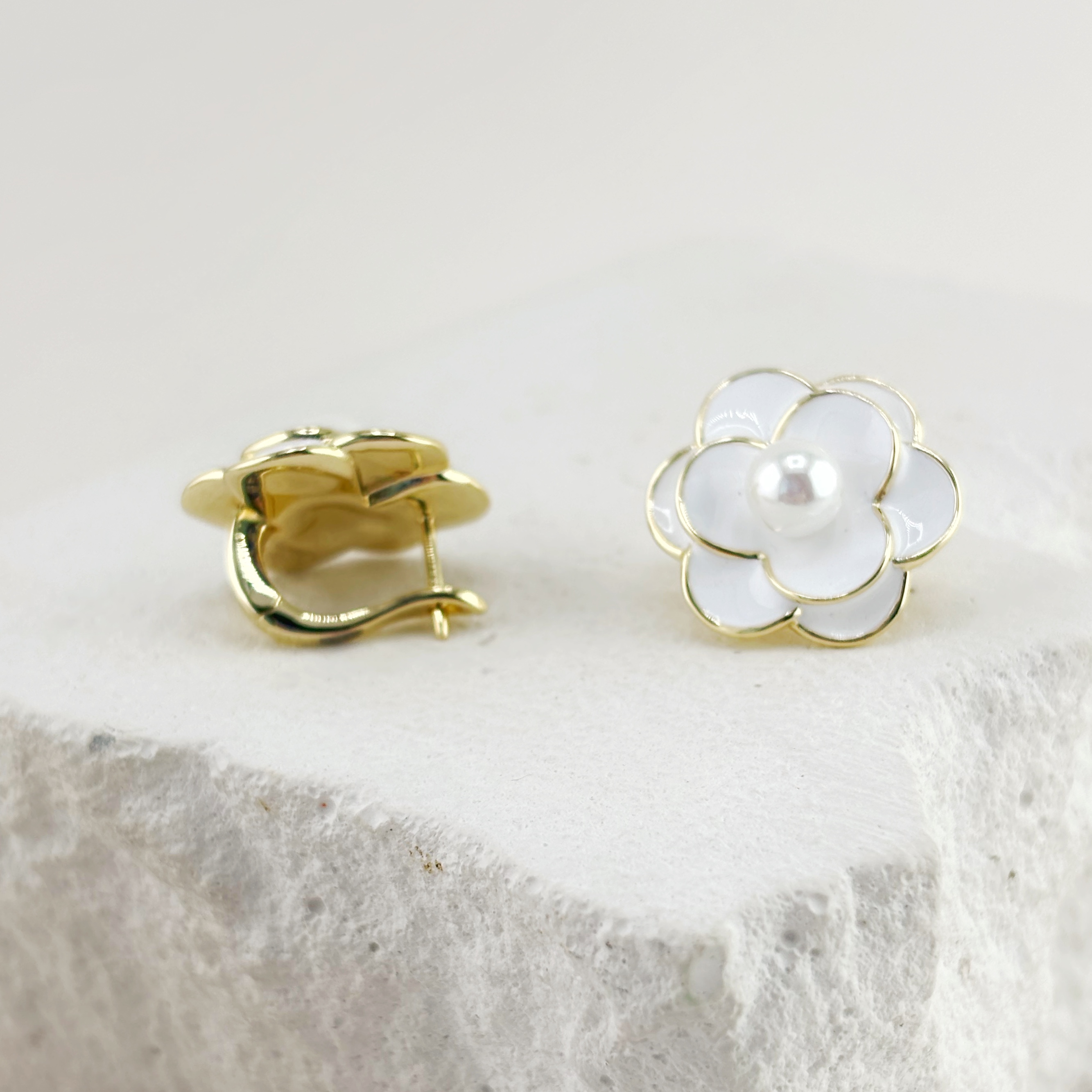 Серьги "Цветы" с перламутром и эмалью из серебра 925 пробы с позолотой арт. SE40487-BY