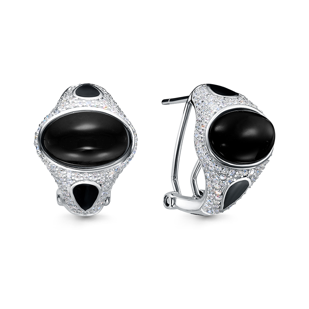 Серьги с ониксом, эмалью и фианитами из серебра 925 пробы арт. SE40897_SR_OX_ENAM_WG