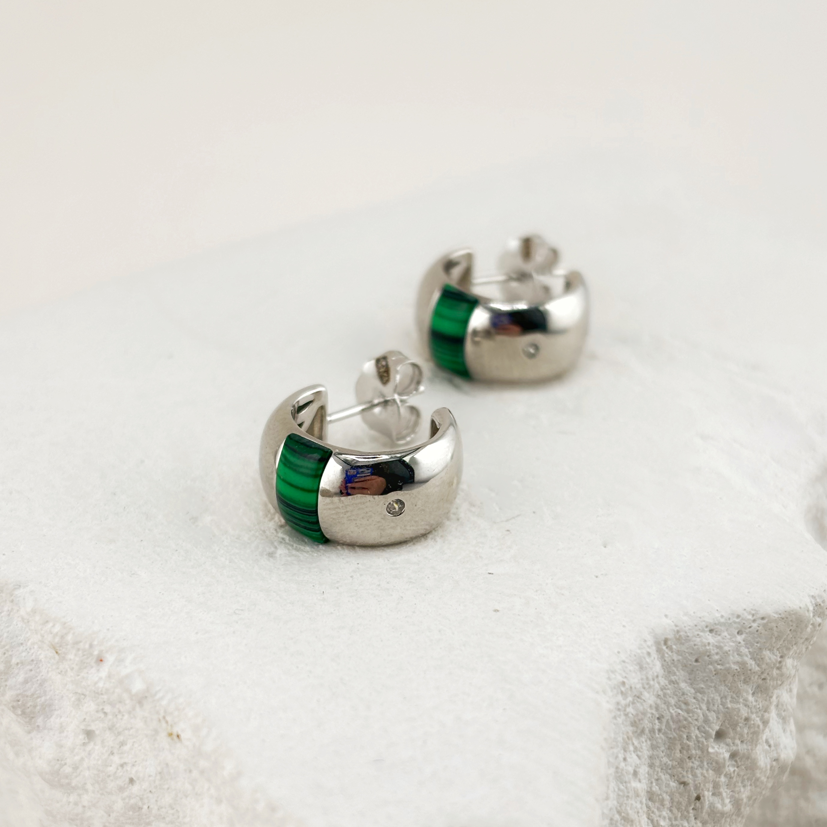 Серьги с малахитом и фианитами из серебра 925 пробы арт. SE42605-BW